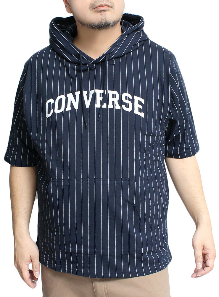 商品名 | 【新品】 4L ネイビー コンバース CONVERSE 半袖 パーカー メンズ 大きいサイズ プルオーバー ロゴ ストライプ プリント Tシャツ |