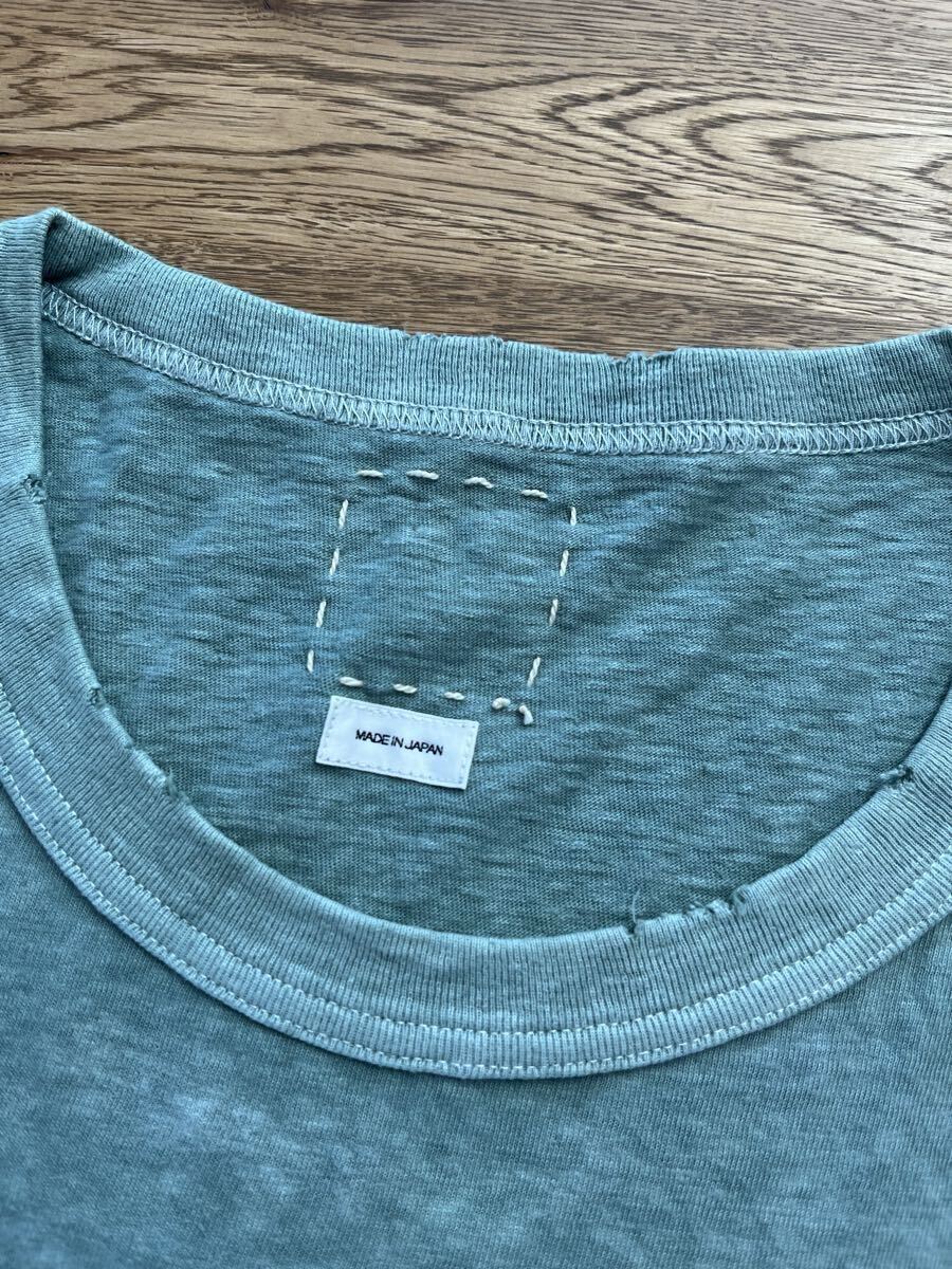 製品染め(ムラ染め)、ダメージ加工が施されております。