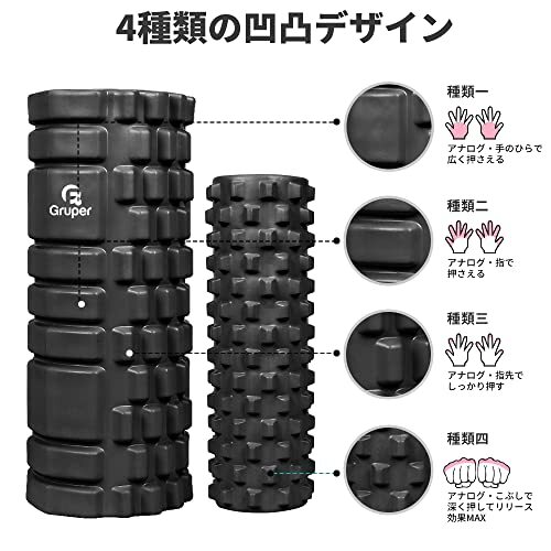 「Gruperフォームローラー 筋膜リリース 大小2個セット 筋膜ローラー ストレッチローラー グリッドフォームローラー (ブラック)」▼▼(商品説明)ブラック/-/Y1・Color:ブラック・?ご注意:商品がアップグレードされたため、実物の色は画像にご参照ください。表記の色は無視してください。全身に対応:お得な大・小2個セット大きいフォームローラー:長さ33cm×直径14cm 小さいフォームローラー:長さ30.7cm×直径9.7cm フォームローラーは2個セット、サイズが違うので、身体の部位によって使い分けができます。直径が大きいため、全身をリラックスして、痛気持ちいい感じがあります。直径が小さいと仰向けで背中や腰をコロコロしやすく、とても楽になります。大きいフォームローラーは自宅でのご使用、小さいフォームローラーは持ち歩きに便利です。・内圏補強版材質:耐久性に優れた高品質EVA素材(表面)+PP(中芯部) 表面は柔軟性、弾力性に優れるので、刺激や痛みが苦手な初心者にもオススメできます。内側は耐久性が高い補強版PP素材を使用しており、強度が十分あり、体重をかけても割れにくいです。フォームローラーは首、肩、背中、脇の下、腰、お尻、太もも、ふくらはぎ、足裏など全身に使えます。・筋膜リリース表面には4種類の凹凸