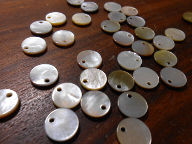 黒蝶貝を加工した色目が銀色っぽいトップホールです。