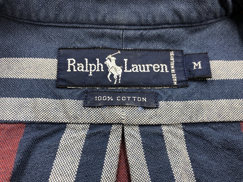 ラルフローレン RALPH LAUREN メンズ カジュアルシャツ Mサイズ 紺」×白×赤 ストライプ