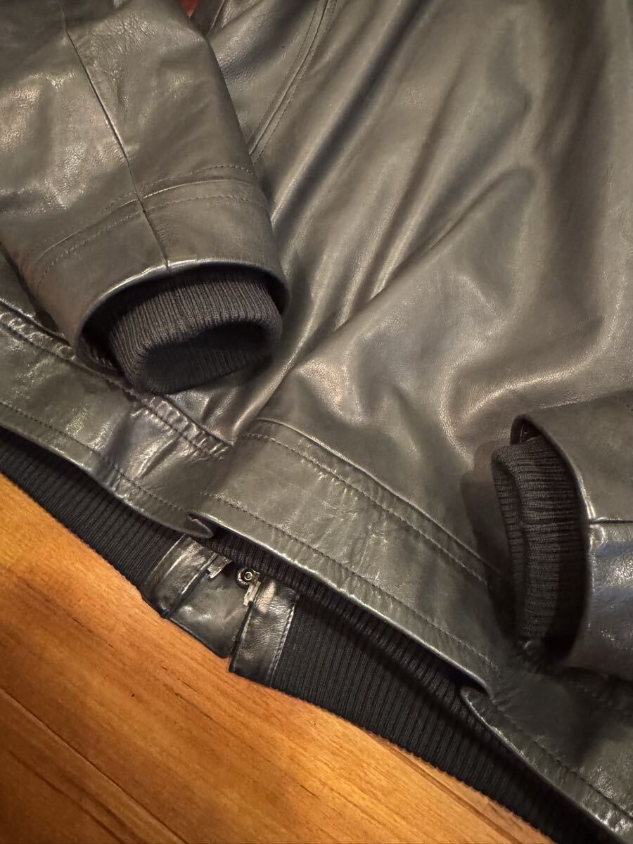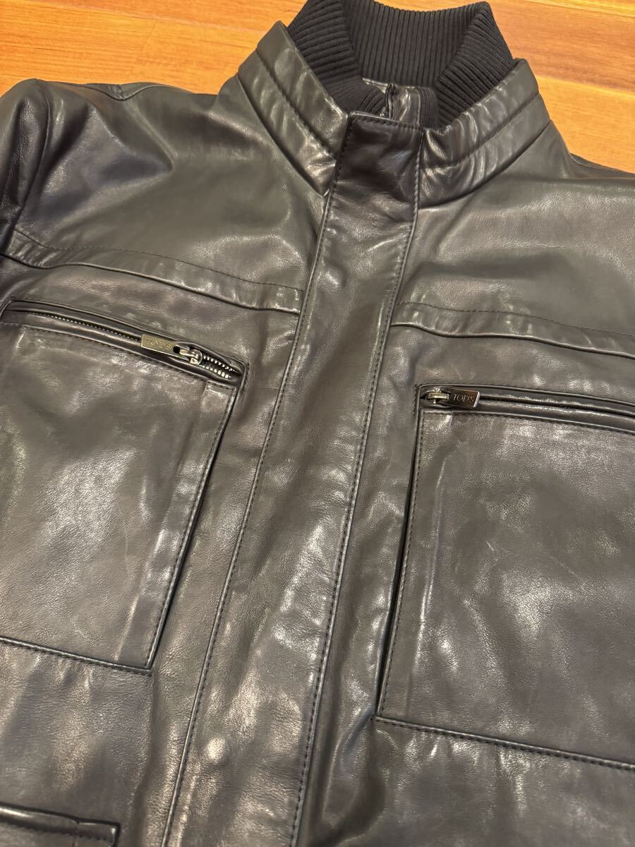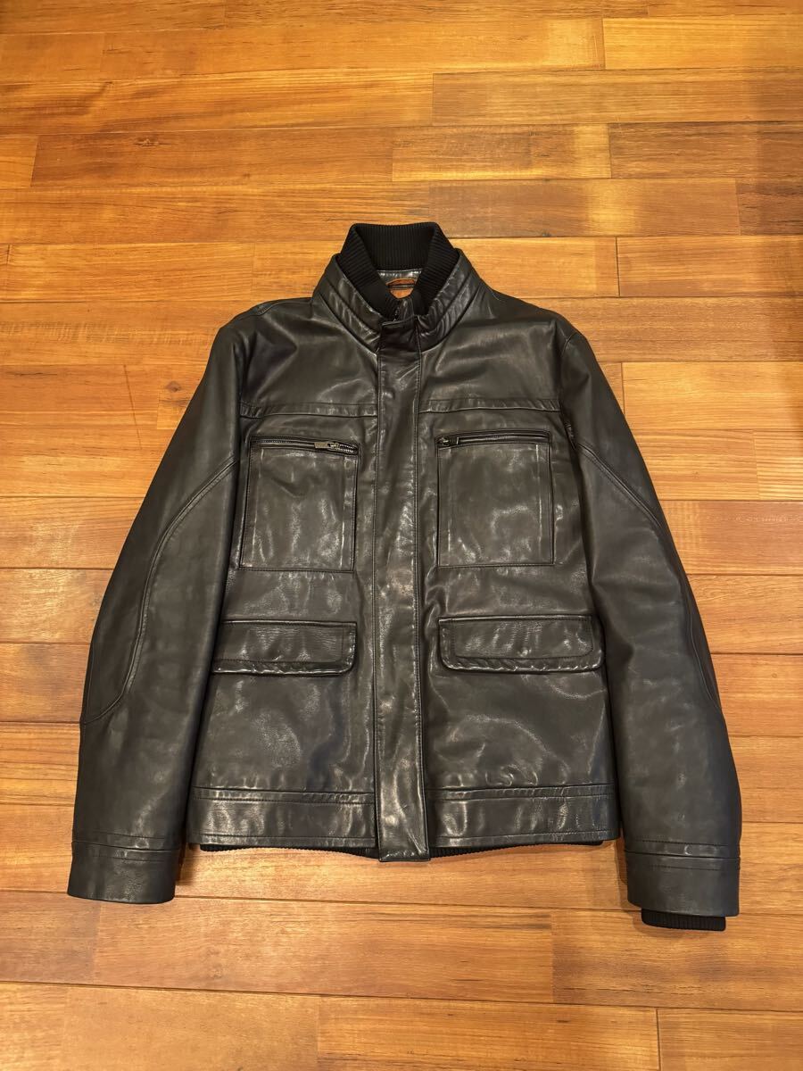 肉厚で滑らかな極上レザーを使用しています。襟立ちが大きい独特のデザインは若々しくスタイリッシュに見えます。襟元、袖口、裾にリブがデザインされており、なおさら高級感をUPしてくれます。中綿入りで防寒性もバッチリ。その上着ぶくれしないスマートなシルエットはさすが一流ブランドです。