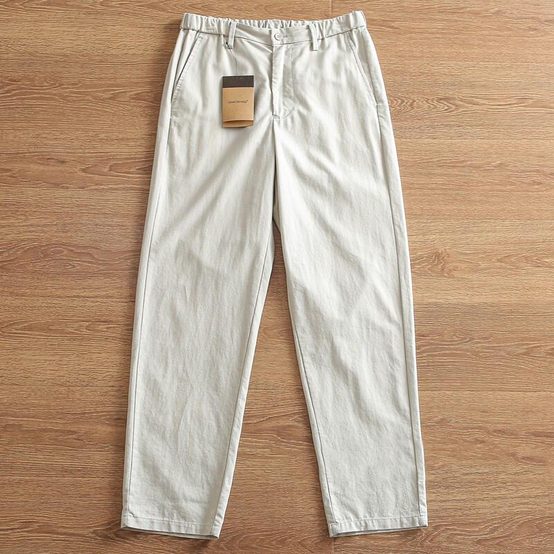 T6924-M オフホワイト 新品 リネン コットン イージーパンツ 速乾 涼感 ストレッチ メンズ サマー ロングパンツ ウエストゴム 春夏 盛夏