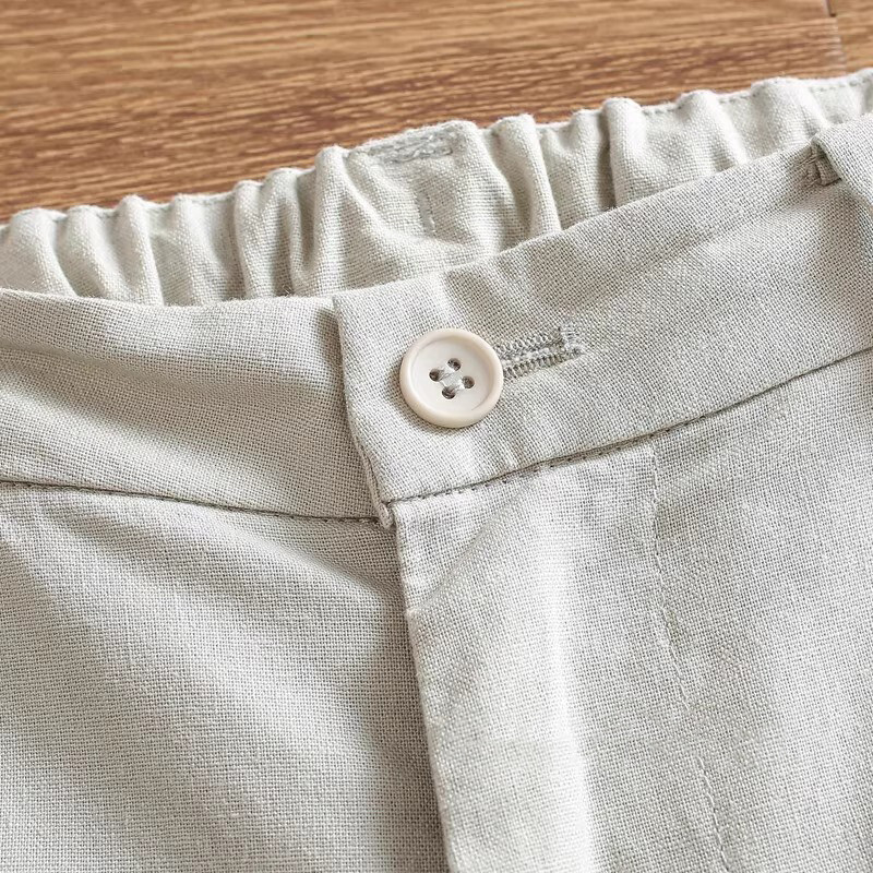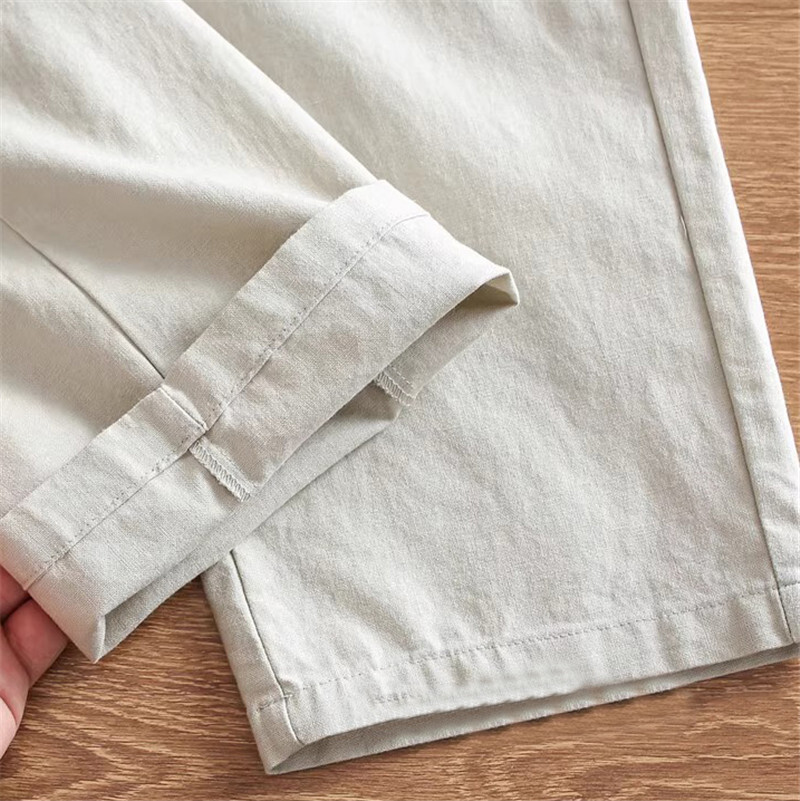 T6924-M オフホワイト 新品 リネン コットン イージーパンツ 速乾 通気性 涼感 ストレッチ メンズ サマー  ロングパンツ ウエストゴム  ドローストリング 薄手 春夏 盛夏