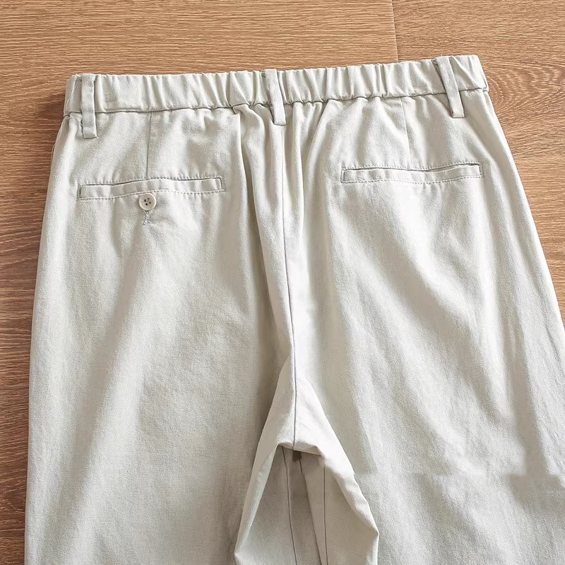• 通気性に優れたリネン混素材で、ムレにくく快適な穿き心地