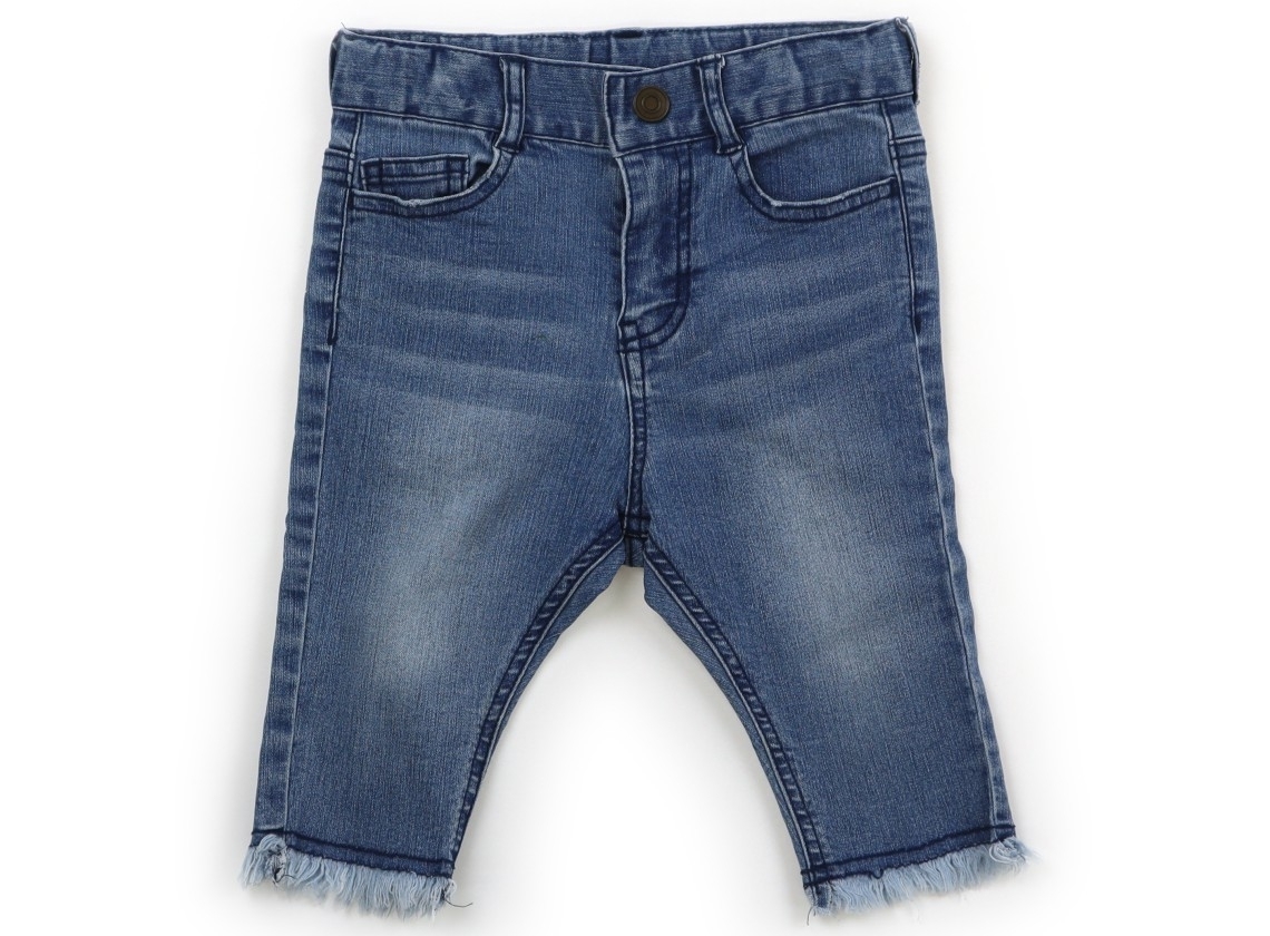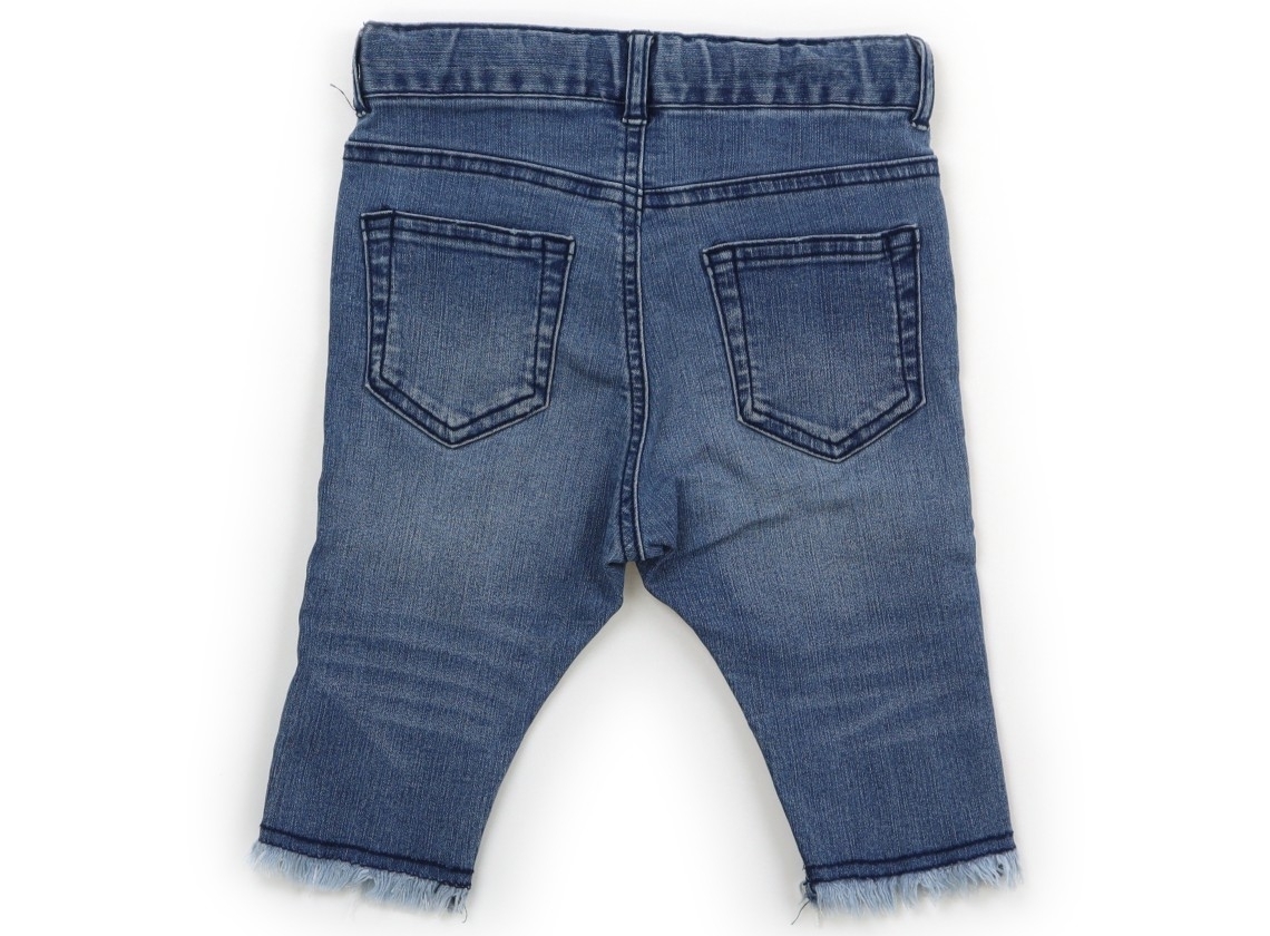 ウエストはボタン調整ゴムに前ファスナー開き。ストレッチ性のあるデニムパンツです。全体に使用感はありますがまだお使いいただけそうです。