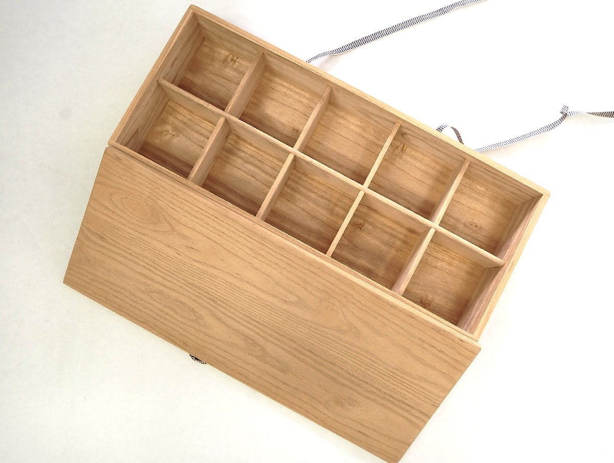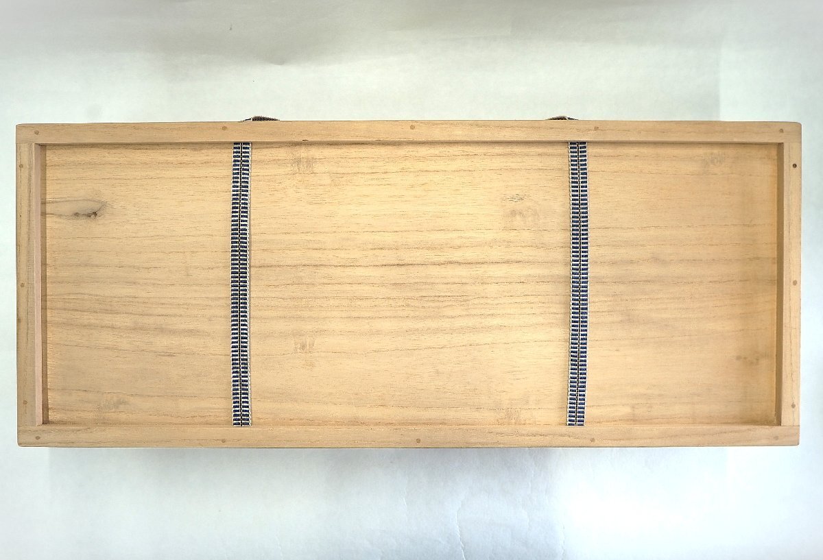 ★☆保管品【 桐箱 木箱 空箱 仕切り付 52.5×21.3×高11cm 二方桟 真田紐付 】収納木箱 茶碗・骨董品などの収納に ☆★