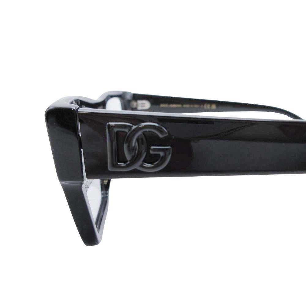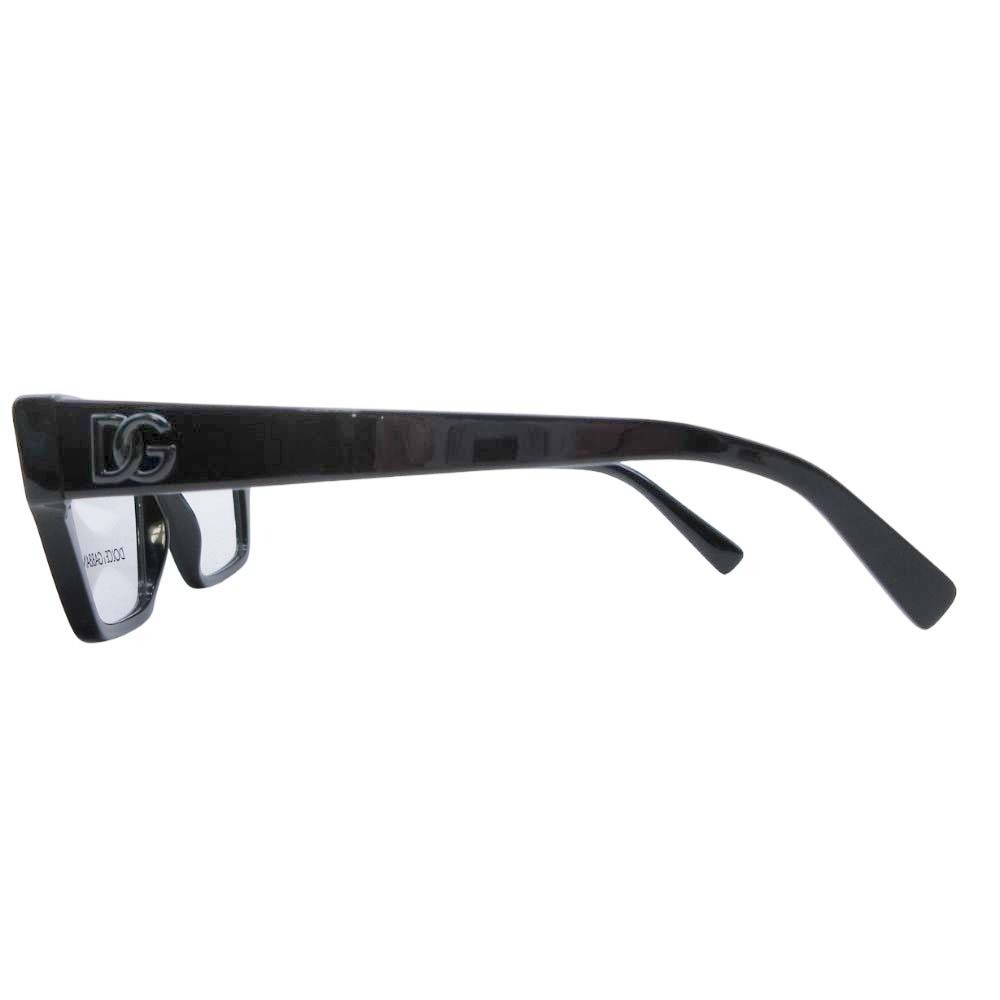 太めのセルフレームが魅力的なアイウェア。スクエア型のフレーム、サイドのDGロゴが特徴的です。
