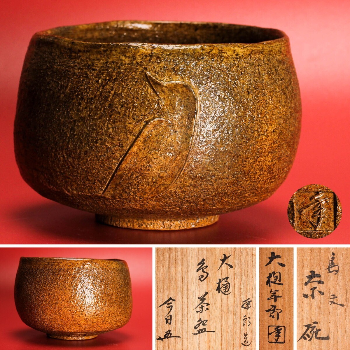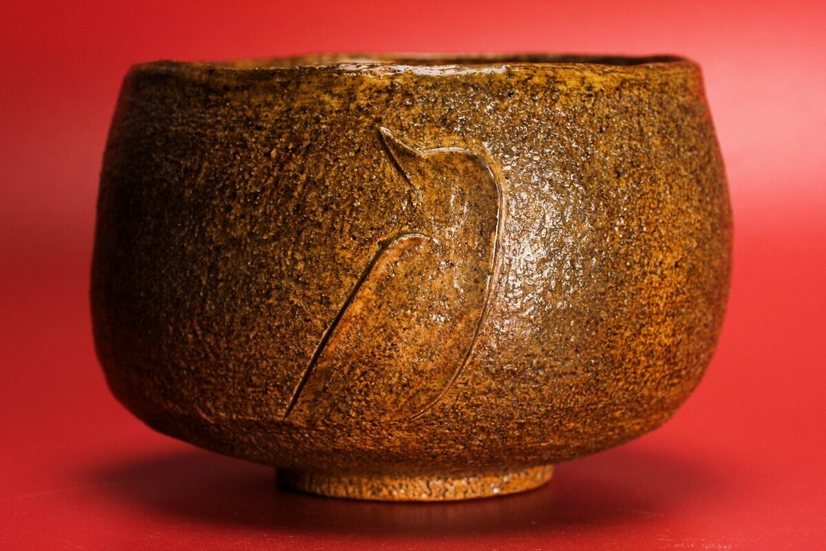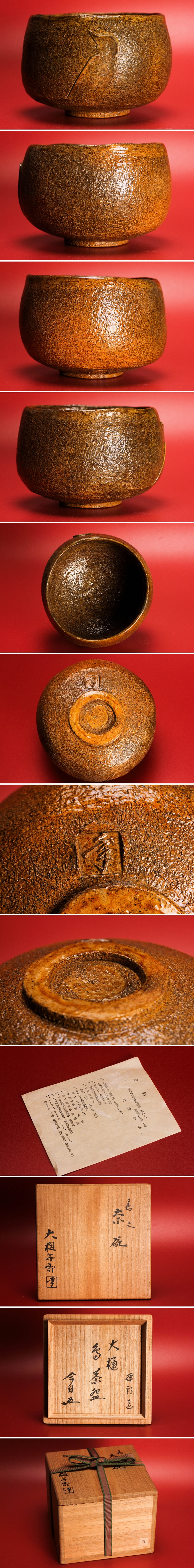 十代 大樋長左衛門(年朗) 鳥文茶碗 裏千家十五代鵬雲斎書付 共箱 栞 茶道具 本物保証