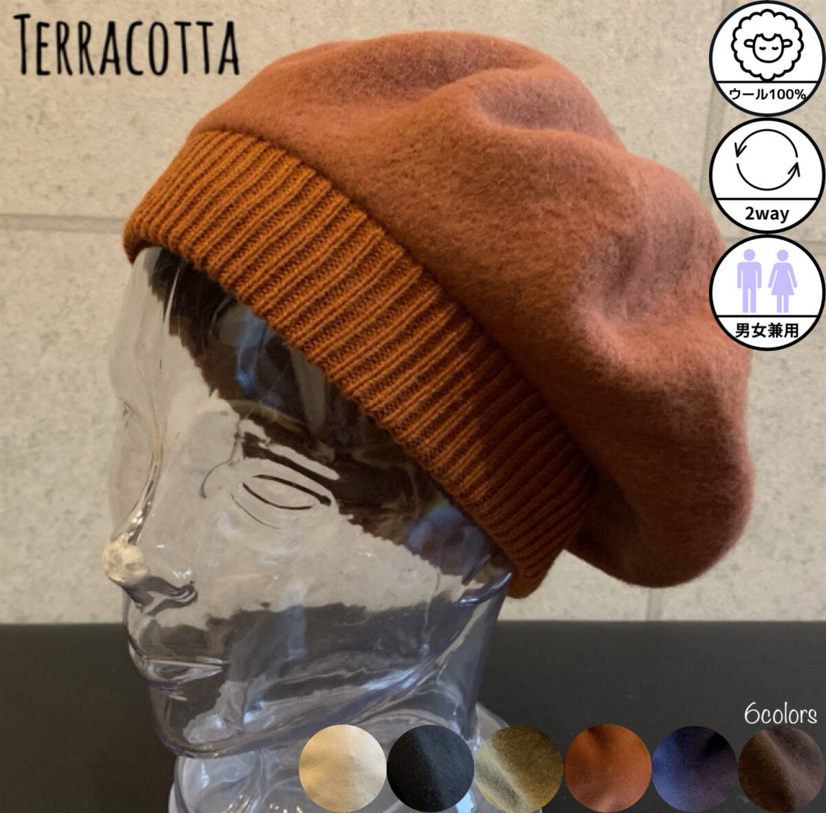 リブ付きのカジュアル感のあるベレー。