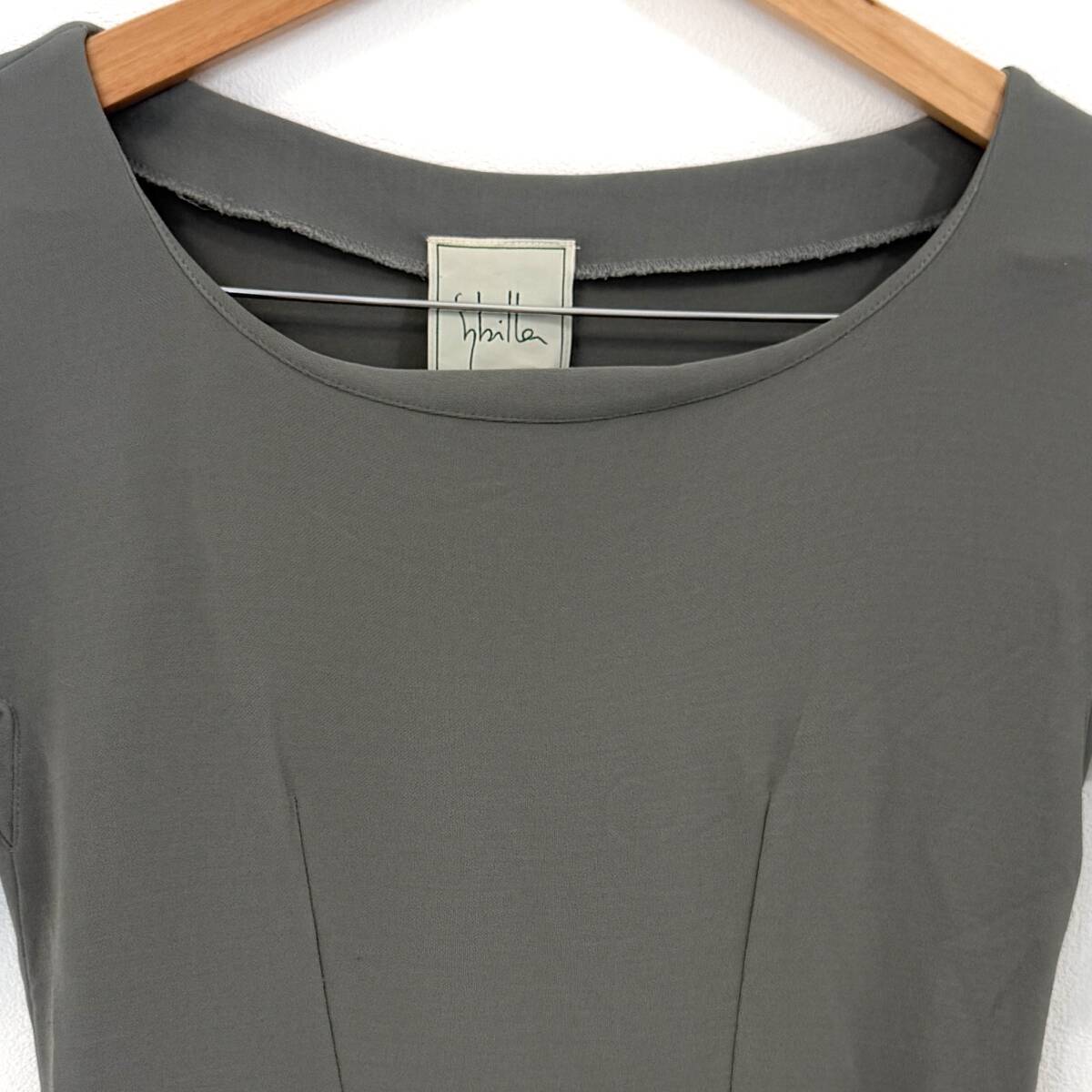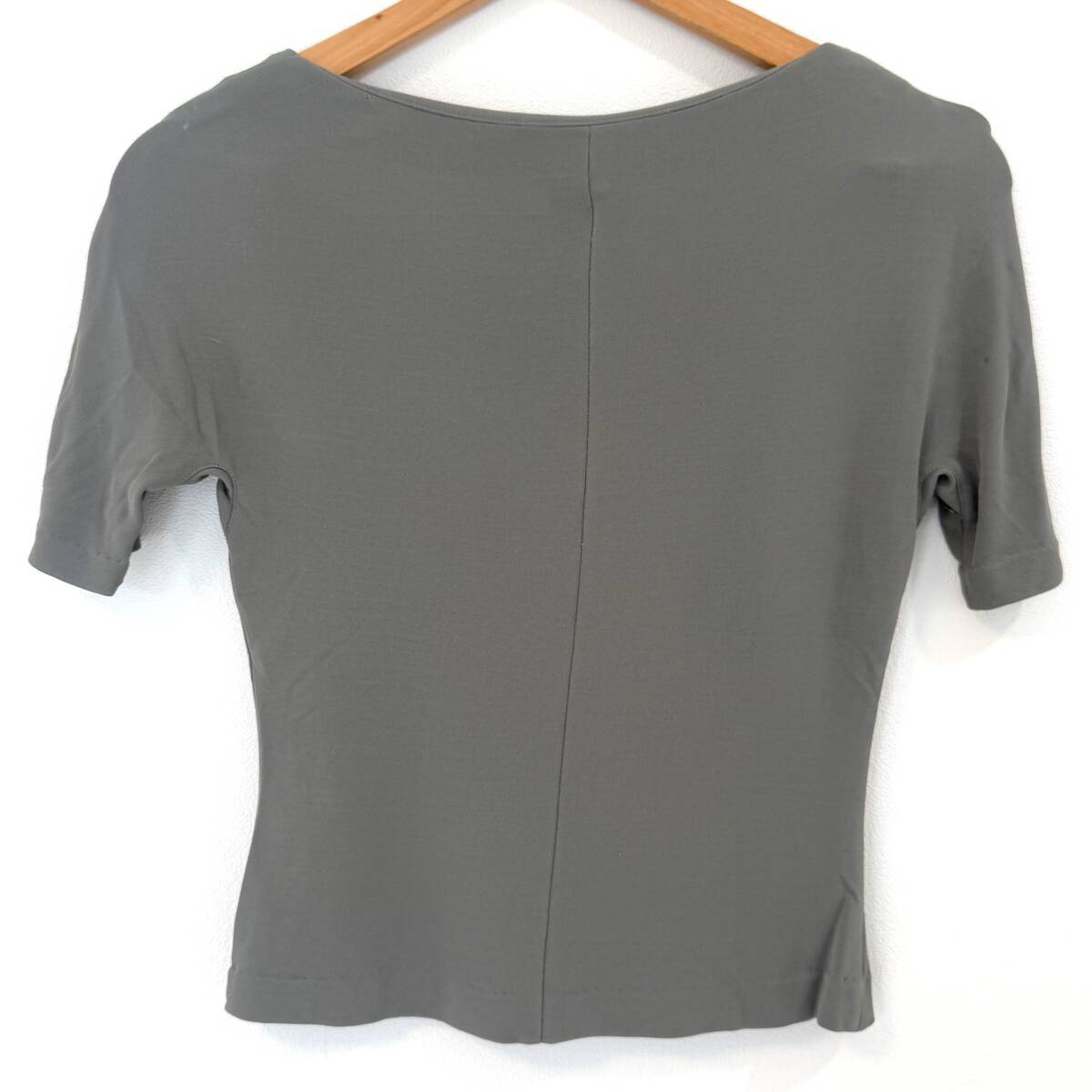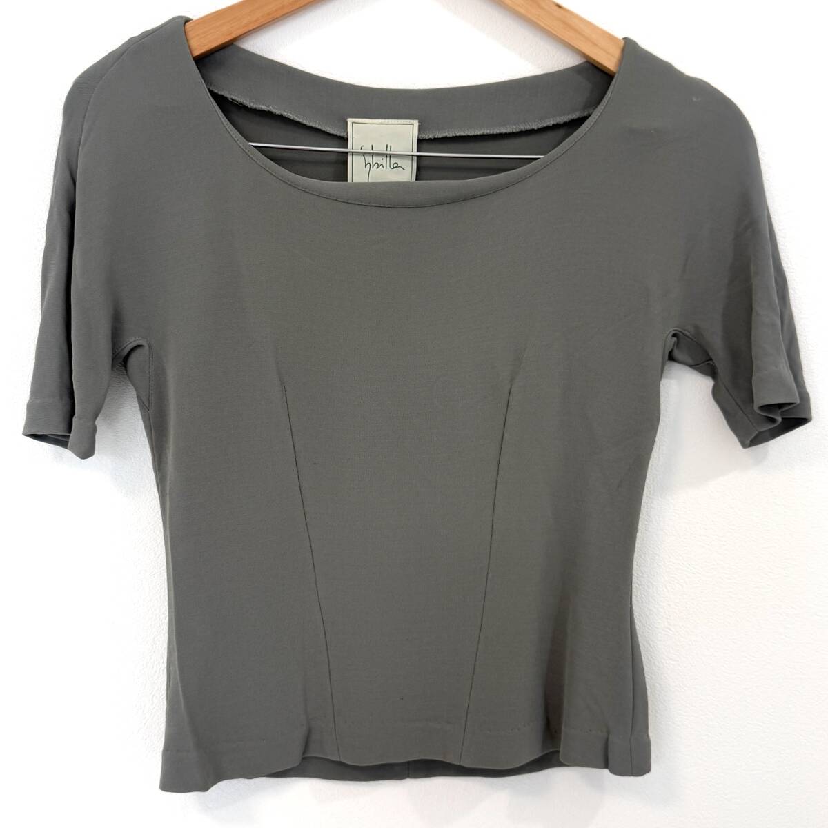 f3495ii Sybilla(シビラ)サイズS位 ブラウス プルオーバー 半袖 ストレッチ シンプル ラウンドネック グレー レディース 綺麗め