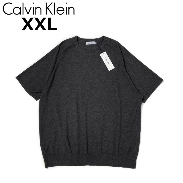 【USA購入 正規新品】Calvin Klein カルバンクライン◆半袖 ニット セーター プルオーバー US購入 CK シンプル クルーネック(XXL)グレー 181215