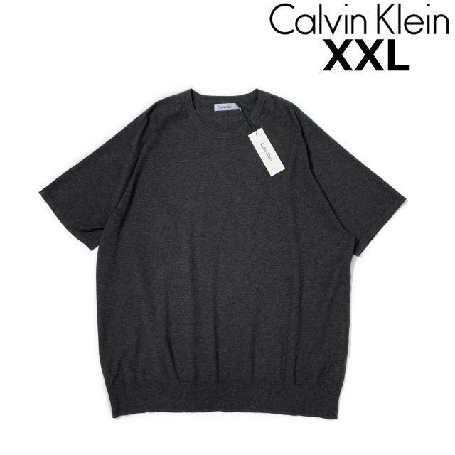 売切り【正規新品】Calvin Klein カルバンクライン◆半袖 ニット セーター プルオーバー US購入 CK シンプル(XXL)グレー 181215