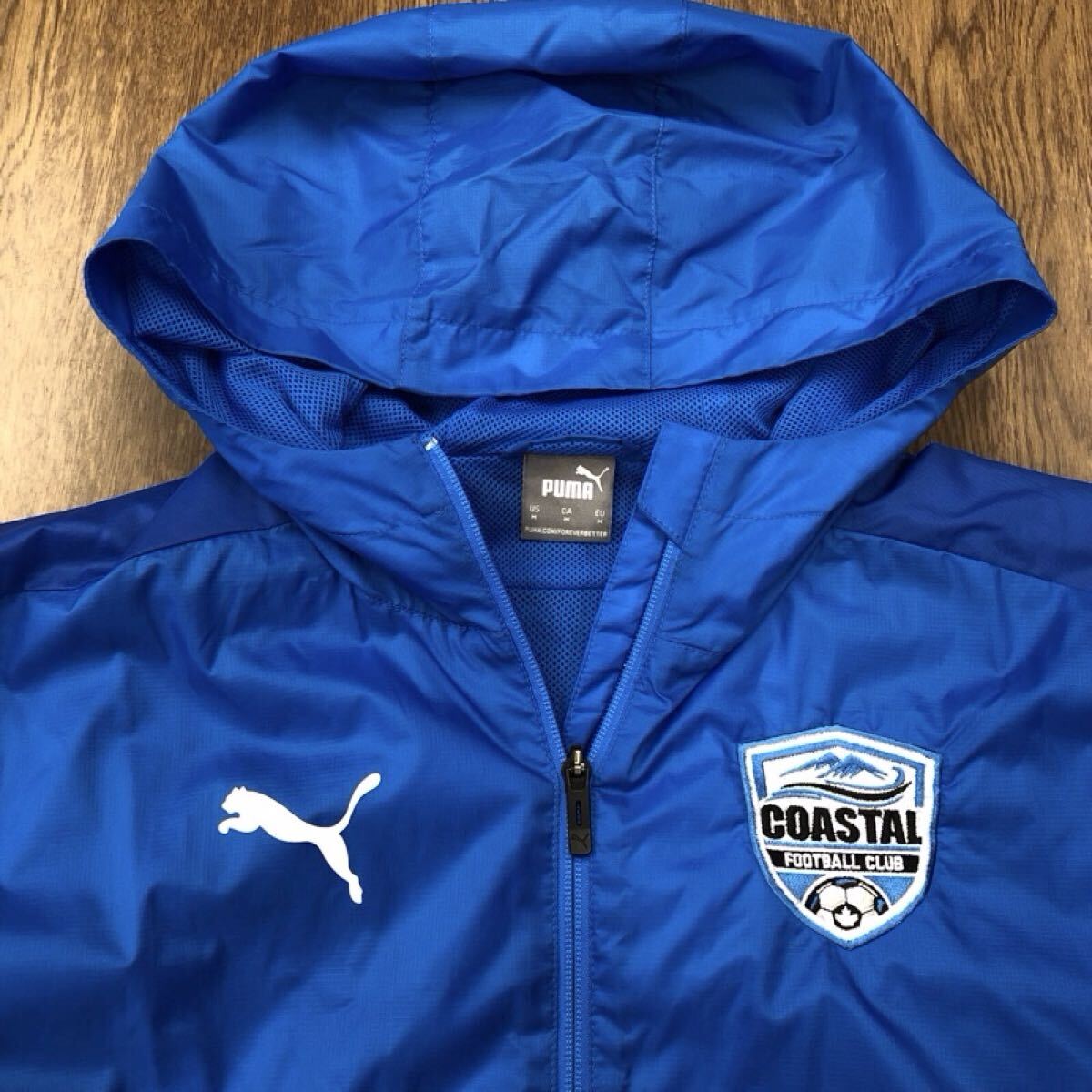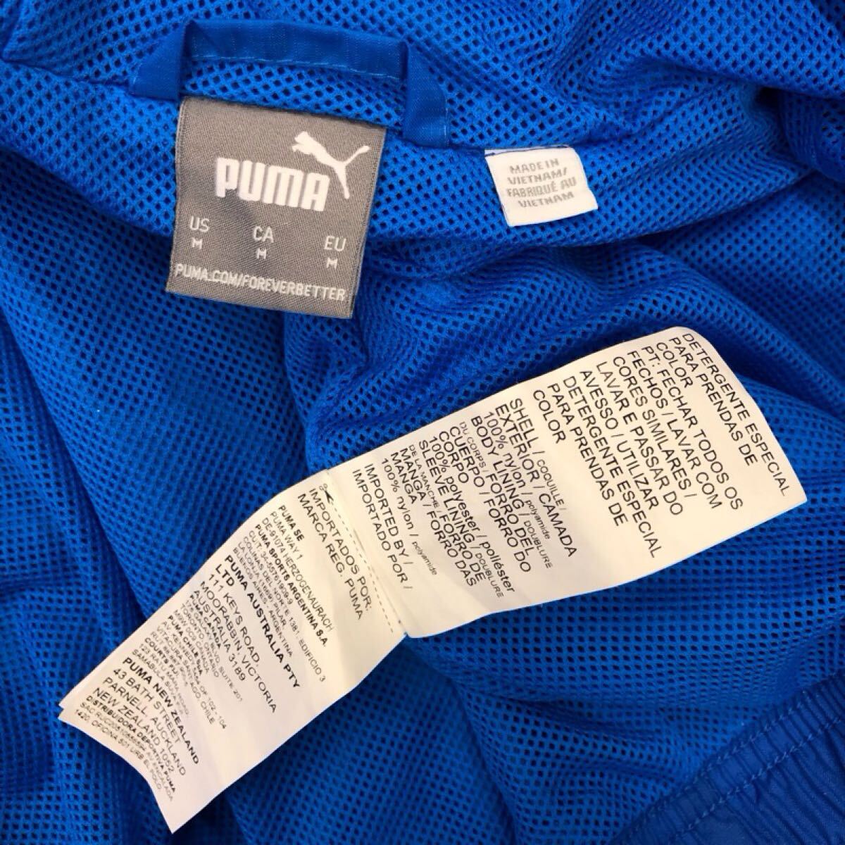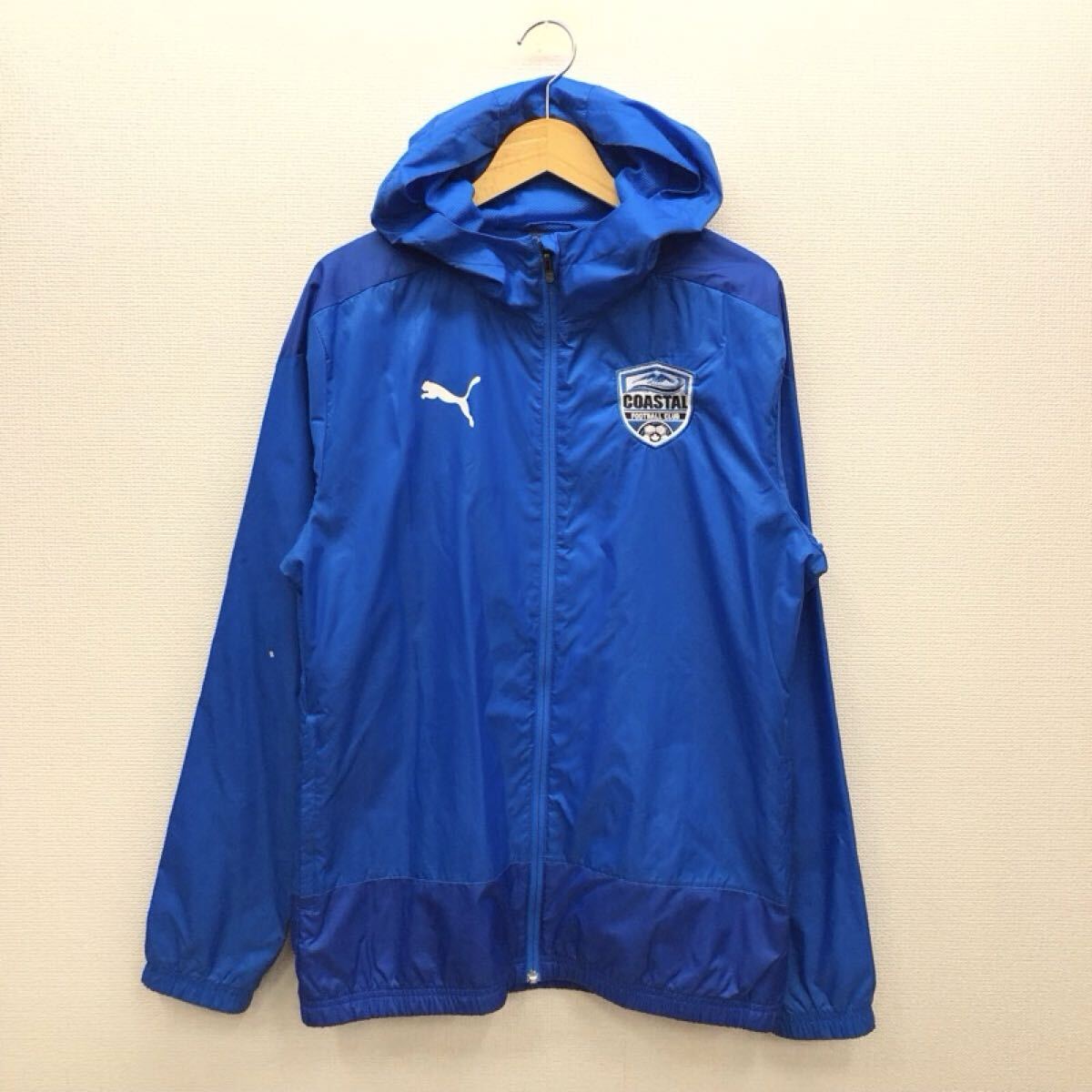 【GH555】PUMA Mサイズ ウィンドブレーカー ブルー フード付き ポケットジップ ブランド古着 プーマ スポーツウェア 送料無料