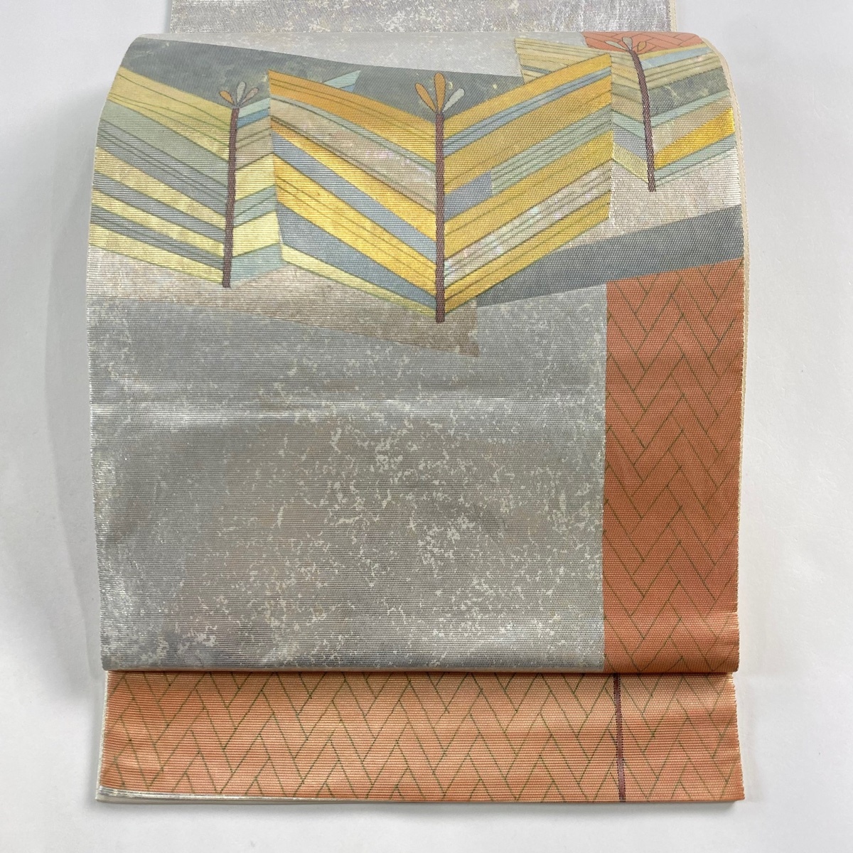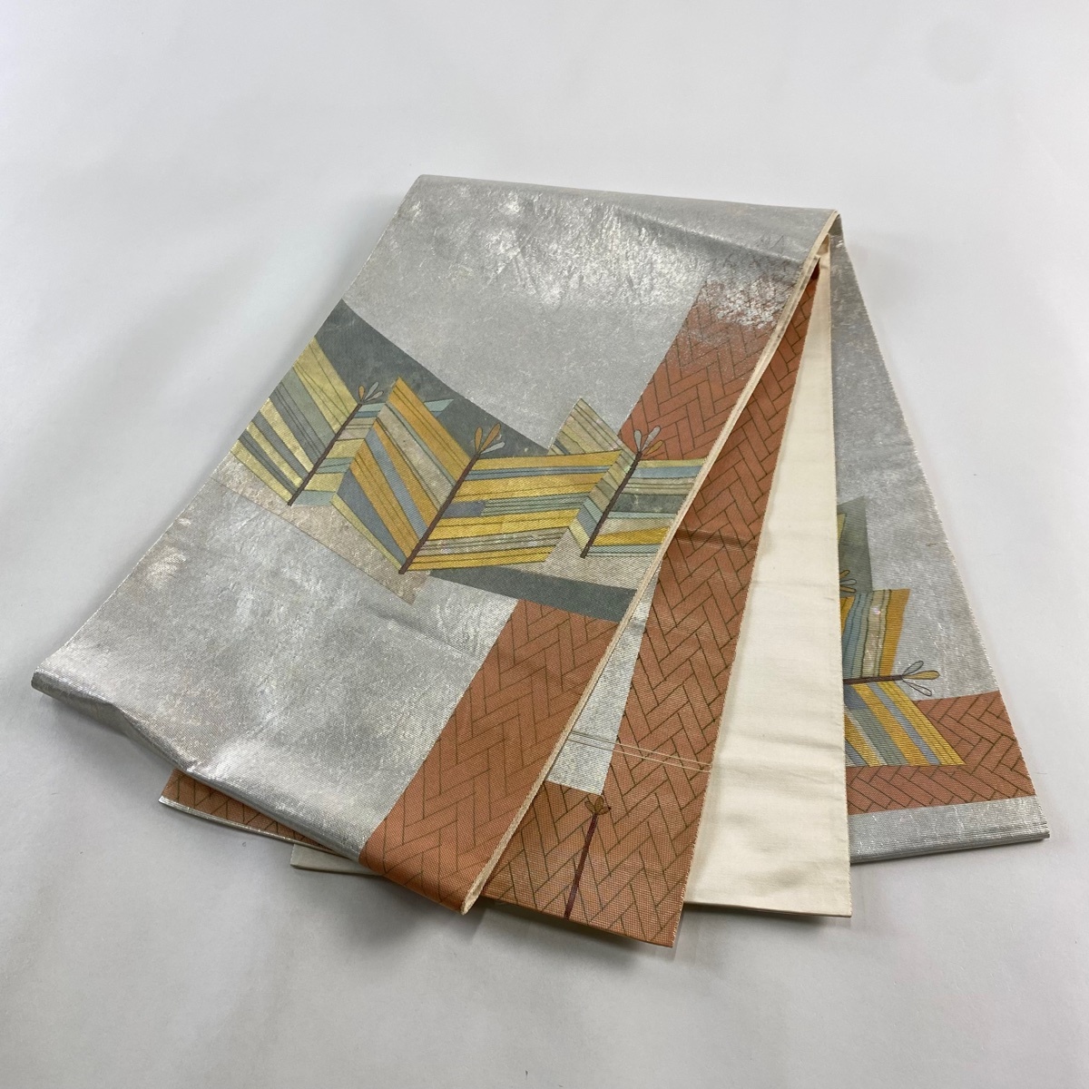 | 袋帯 秀品 関西仕立て 若松 箔 銀色 お太鼓柄 正絹 【中古】 |