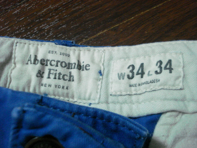 アバクロンビー&フィッチ/カラーパンツ/メンズ/34×34/青/A&F
