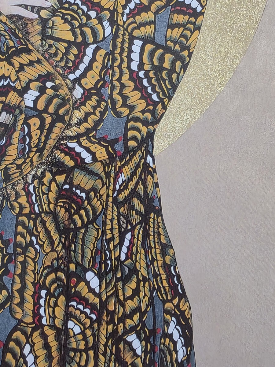 額枠は木製・ブラック、ゴールドの枠付きの黒のマット、前面アクリルガラス仕様。
