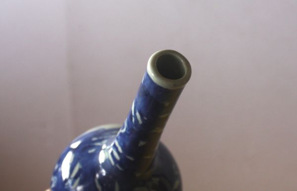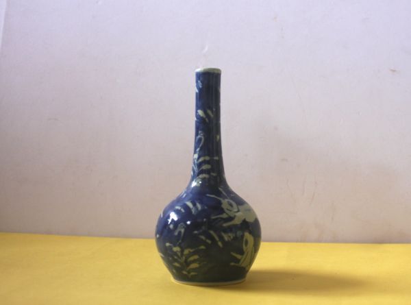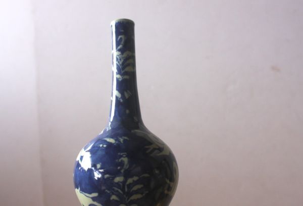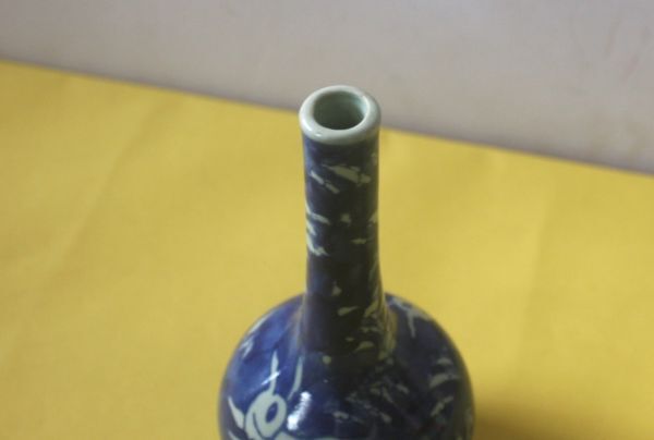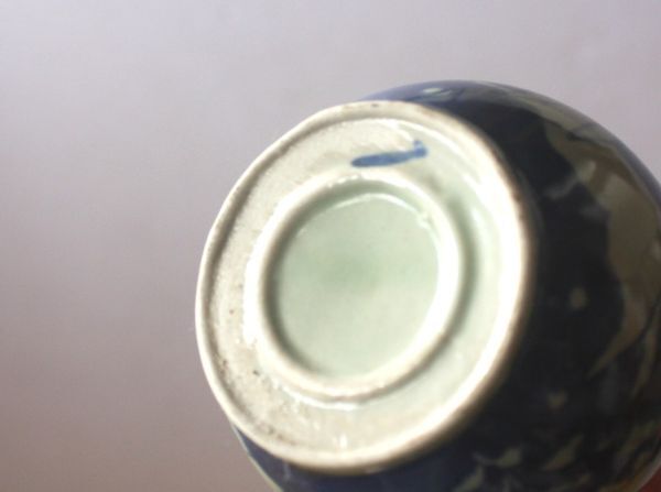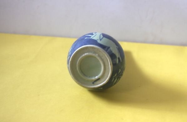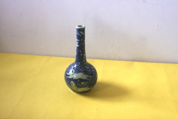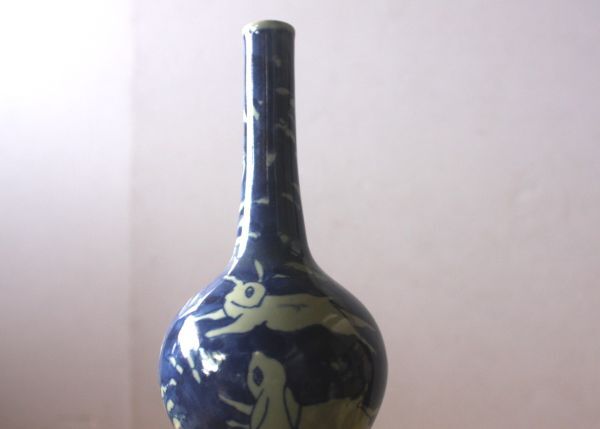 兎のデザインの一輪挿し 陶器の花器 染付 うさぎ図 サイズ:外径8.5×H18㎝/27N8.7-88