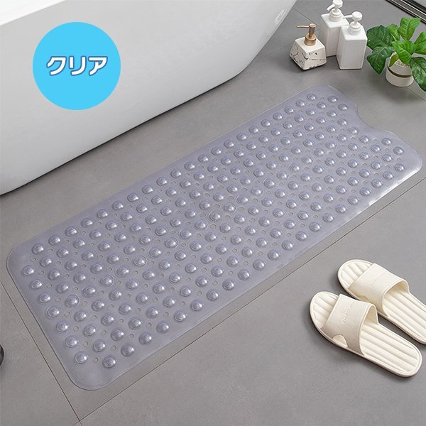 ☆滑り止めマット  ※ご購入されましたらオーダーフォームに【カラー】をご連絡ください。 【カラー】 ・ホワイト ・クリア 【商品名】 滑り止めマット 【説明】 バスタイムを安全・安心・快適に! 浴槽内に設置して入浴中の転倒などを防止する滑り止めマットです。 約200個の吸盤が床面にしっかり吸着しズレを防止。表面は突起物により足裏マッサージ効果も。 表面には滑り止め加工と水捌けをよくする排水口があり、バスマットとしてもお使いいただけます。 洗濯機に入れて丸洗いが可能なので手入れもお手軽です。 【カラー】 ・ホワイト ・クリア 【サイズ】 約100cm×40cm 【素材】 PVC樹脂 ( お風呂マット バス用品 お風呂用品 浴室 浴槽内 すべり止め 子供 妊婦 高齢者 介護 事故防止 足ふきマット 足拭きマット 速乾 排水 ズレない 吸盤式 滑らない )  |