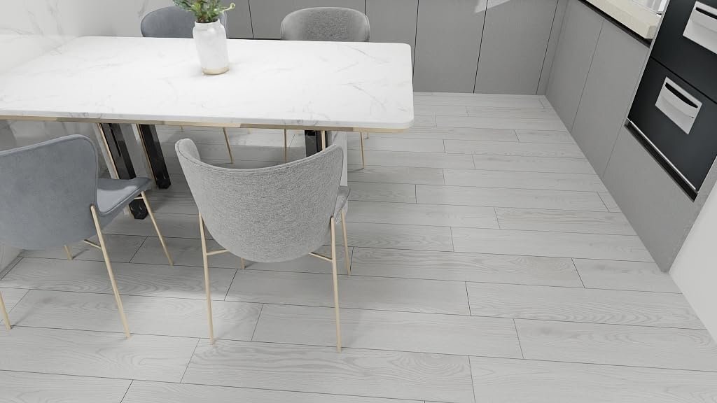 【傷防止・防汚】耐摩耗性に優れたPVC(SPC)素材を使用した床面です。防水・防汚加工も施されているので、水ハネも気にせず拭き取りも簡単です。傷や汚れから効果的に守ります!靴を履くこともできます。