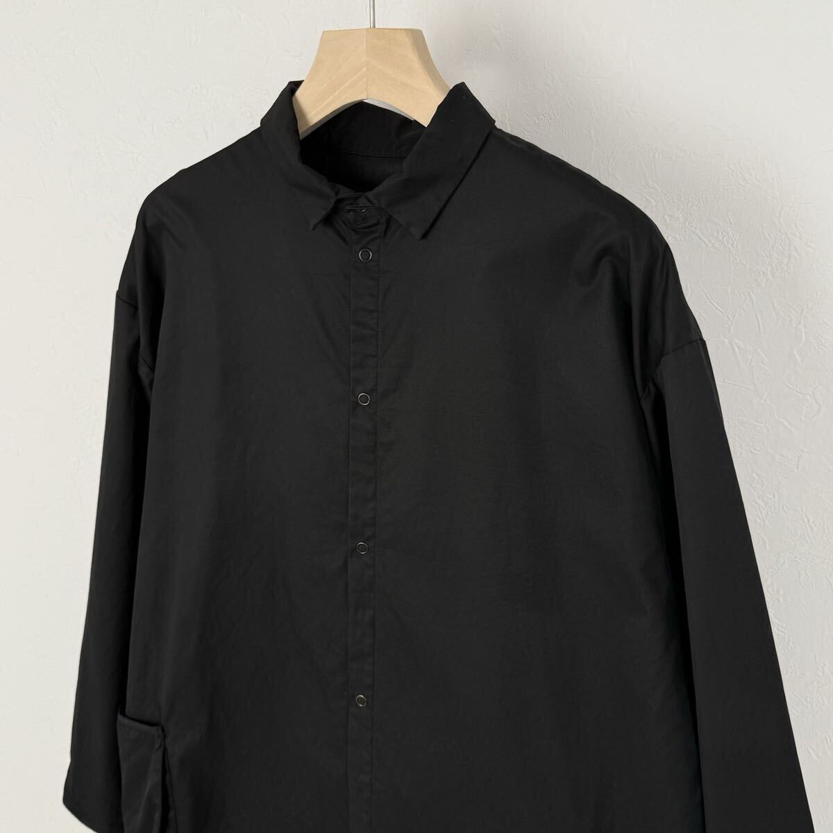 ボタンはスナップで着脱がイージーな仕様で、ゆったりとしたシルエットはざっくりと羽織ることで アウターとしてもしっかりとご使用頂けます。