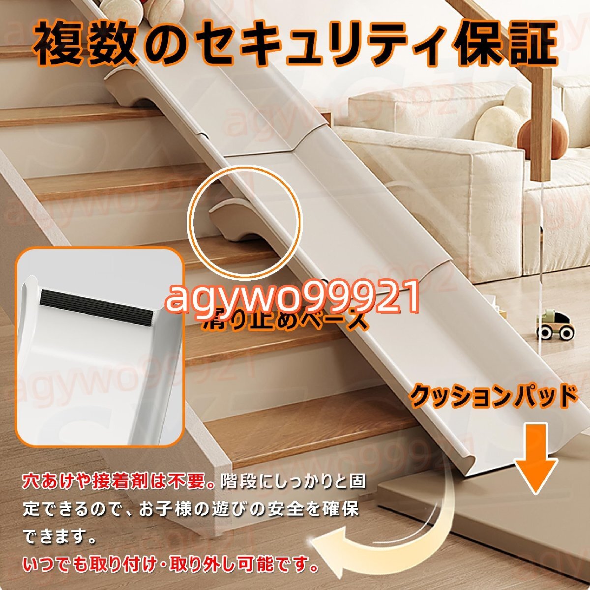 多重安全仕様: 滑り止めベース + クッションで衝撃吸収! 幼児レベル PP 素材は無毒・無臭、肌触りも安心。穴あけ・接着剤不要で階段にしっかり固定。