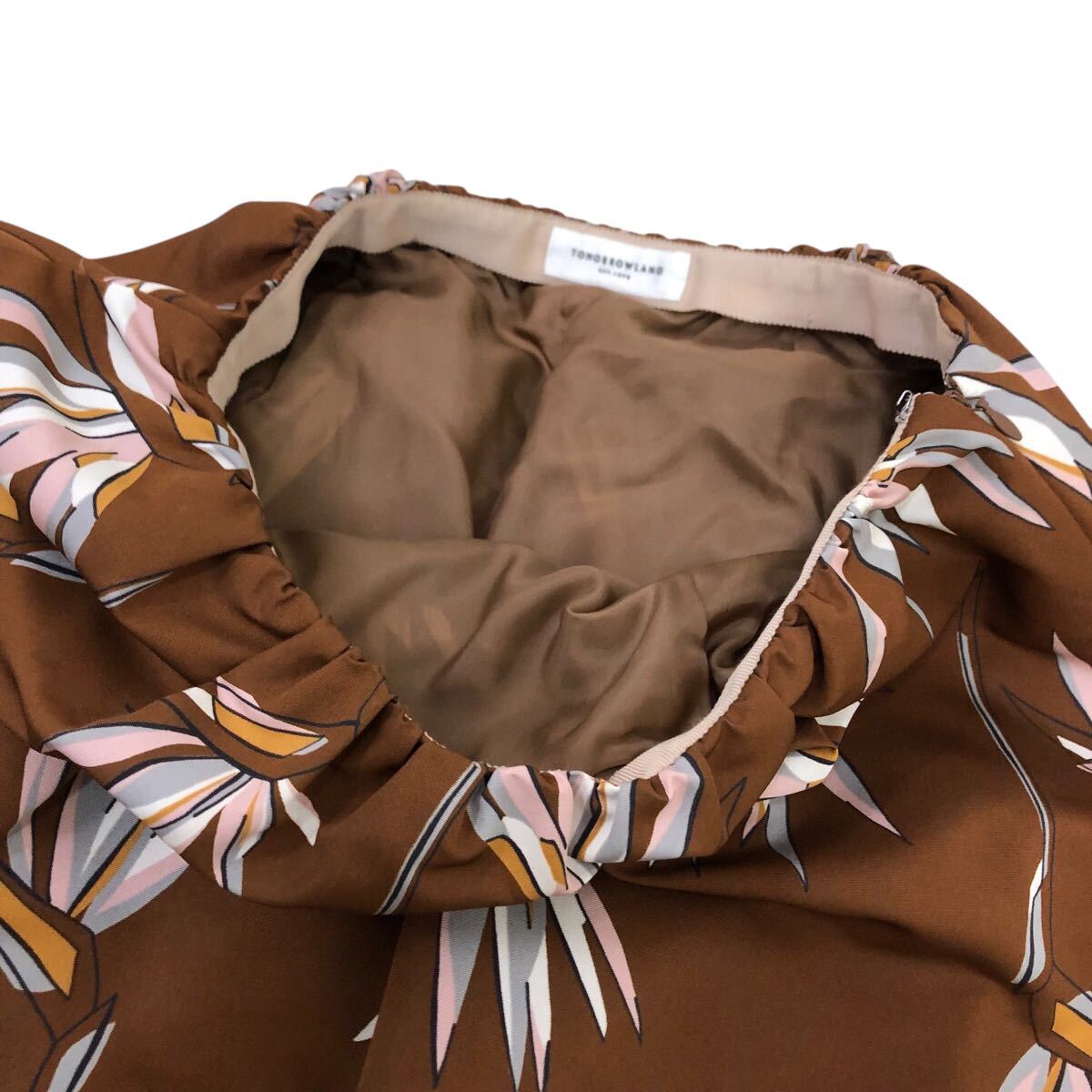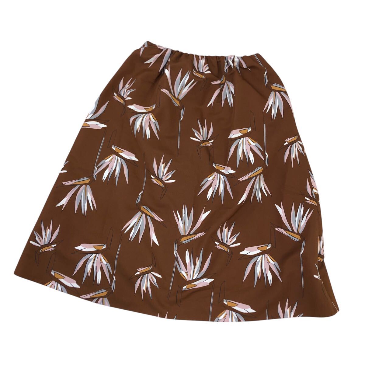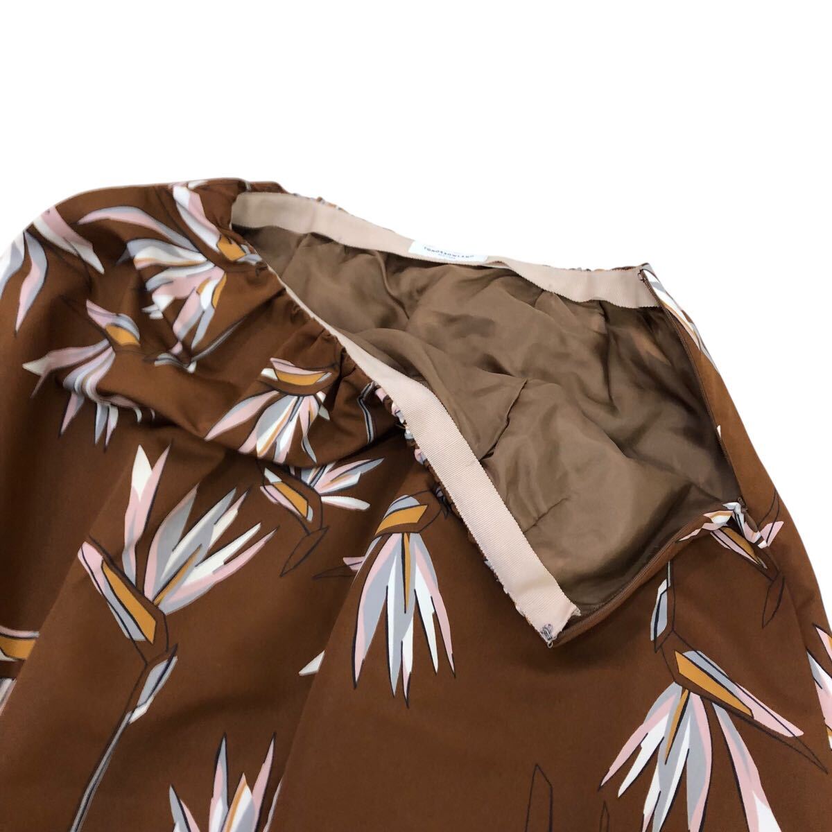 8ND306-24 日本製 TOMORROWLAND トゥモローランド フレアスカート スカート ボトムス ポリエステル100% ブラウン系 総柄 レディース 36
