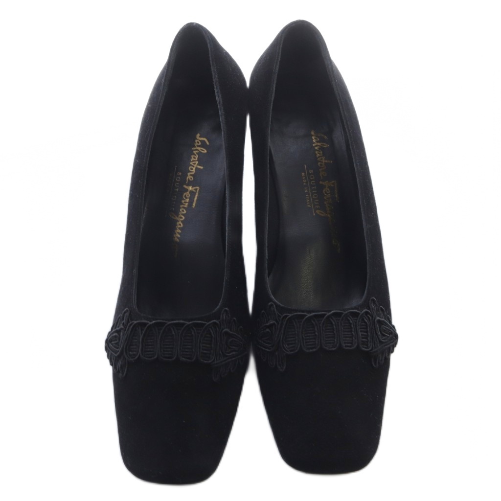 サルヴァトーレフェラガモ Salvatore Ferragamo サルヴァトーレフェラガモ スエード パンプス 8 黒 ブラック /SR25 レディース