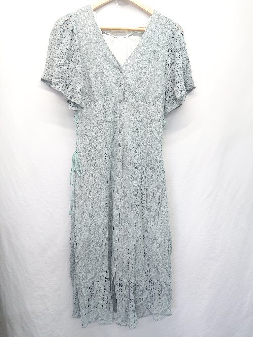 ◇ ⊂ 31 Sons de mode レースアップ 半袖 膝下丈 ワンピース サイズ38 ブルー系 レディース E