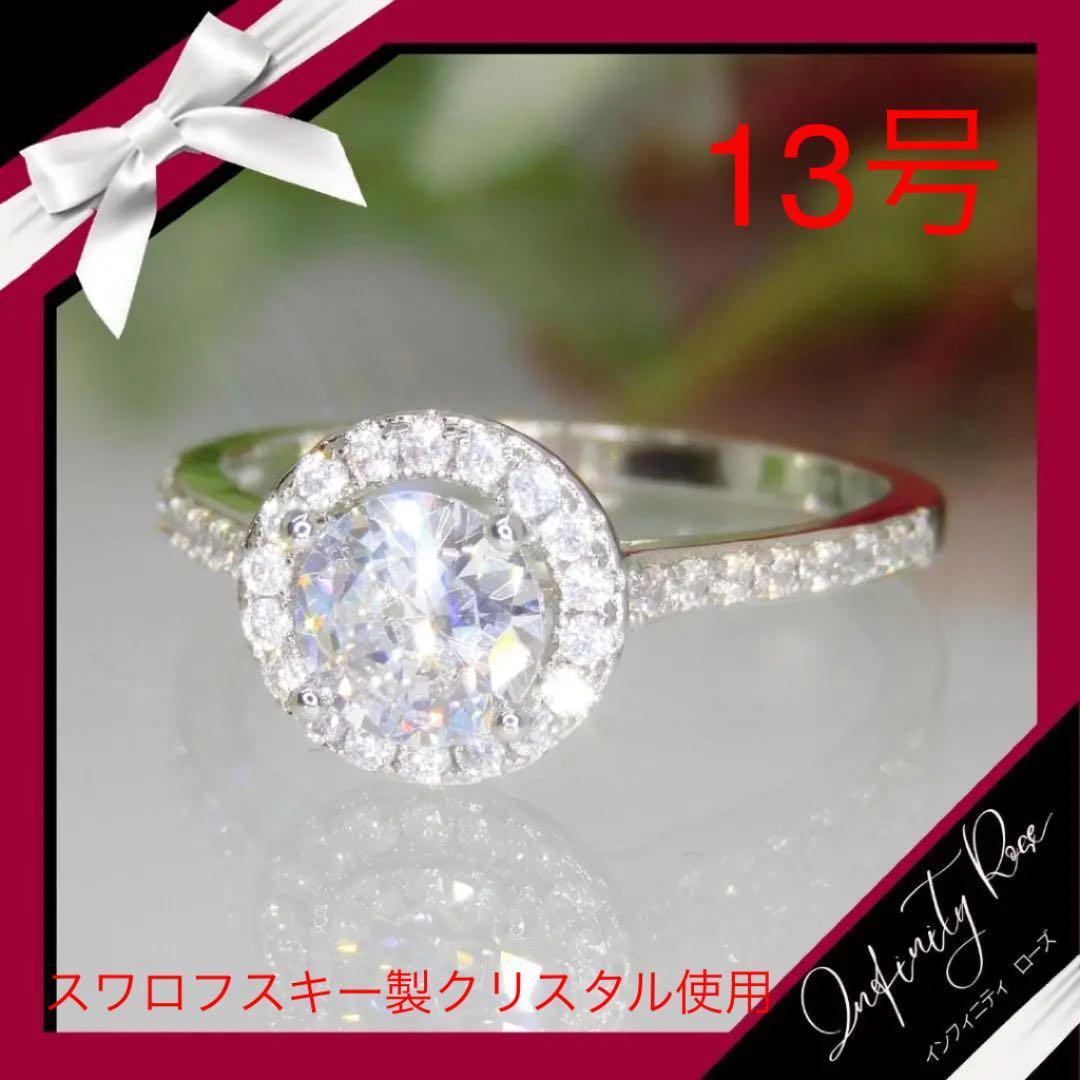 (1095)13号 シルバー高価なまんまるスワロ豪華爪留めリング 指輪 スワロフスキー製クリスタル使用