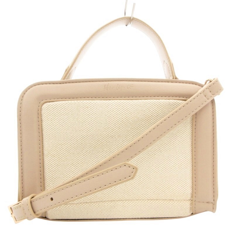 ハーリップトゥ Herlipto ダブルジップ キャンバス Double Zip Canvas ハンドバッグ ショルダー 2WAY 斜め掛け ロゴ ベージュ /GV