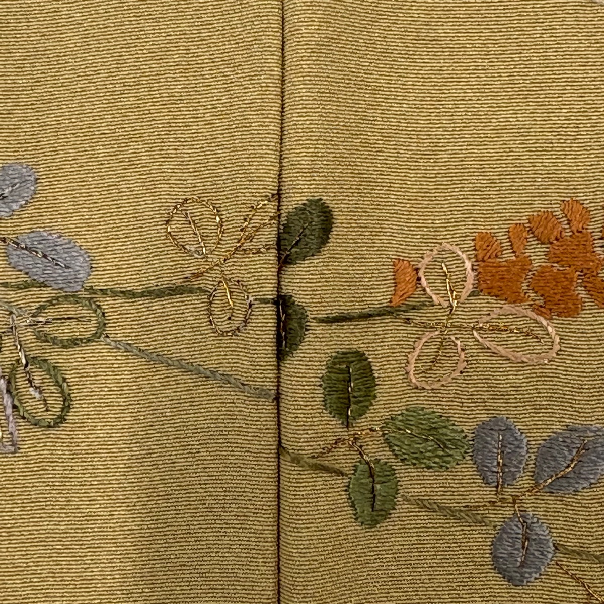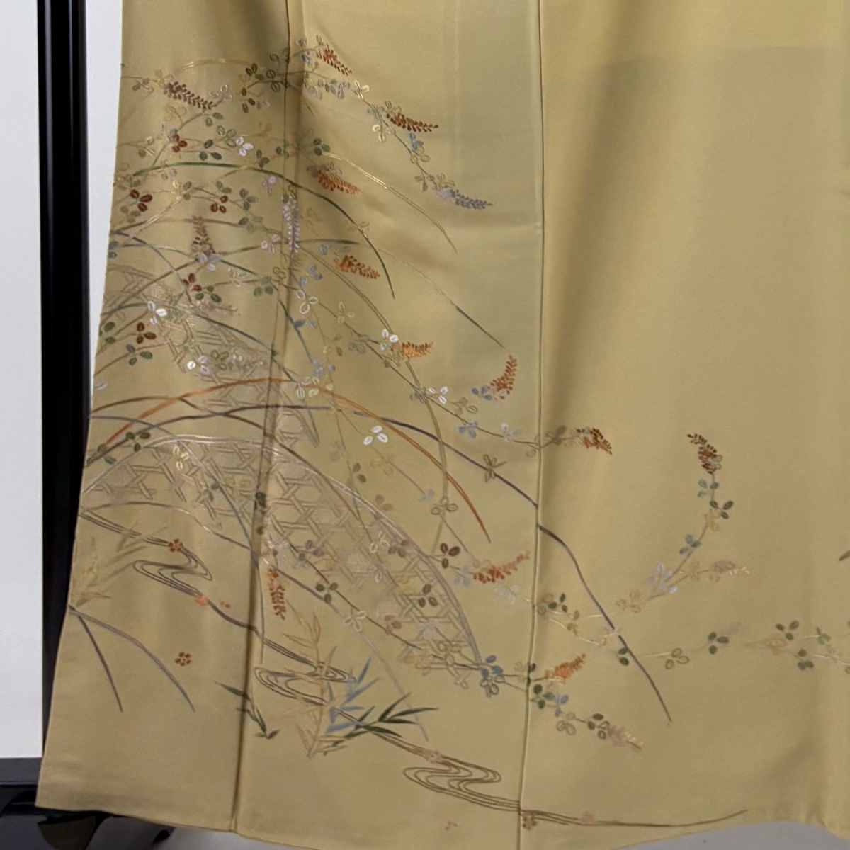 | 訪問着 美品 名品 萩 光悦垣 刺繍 金糸 黄土色 袷 身丈162 裄丈64 M 正絹 【中古】 |