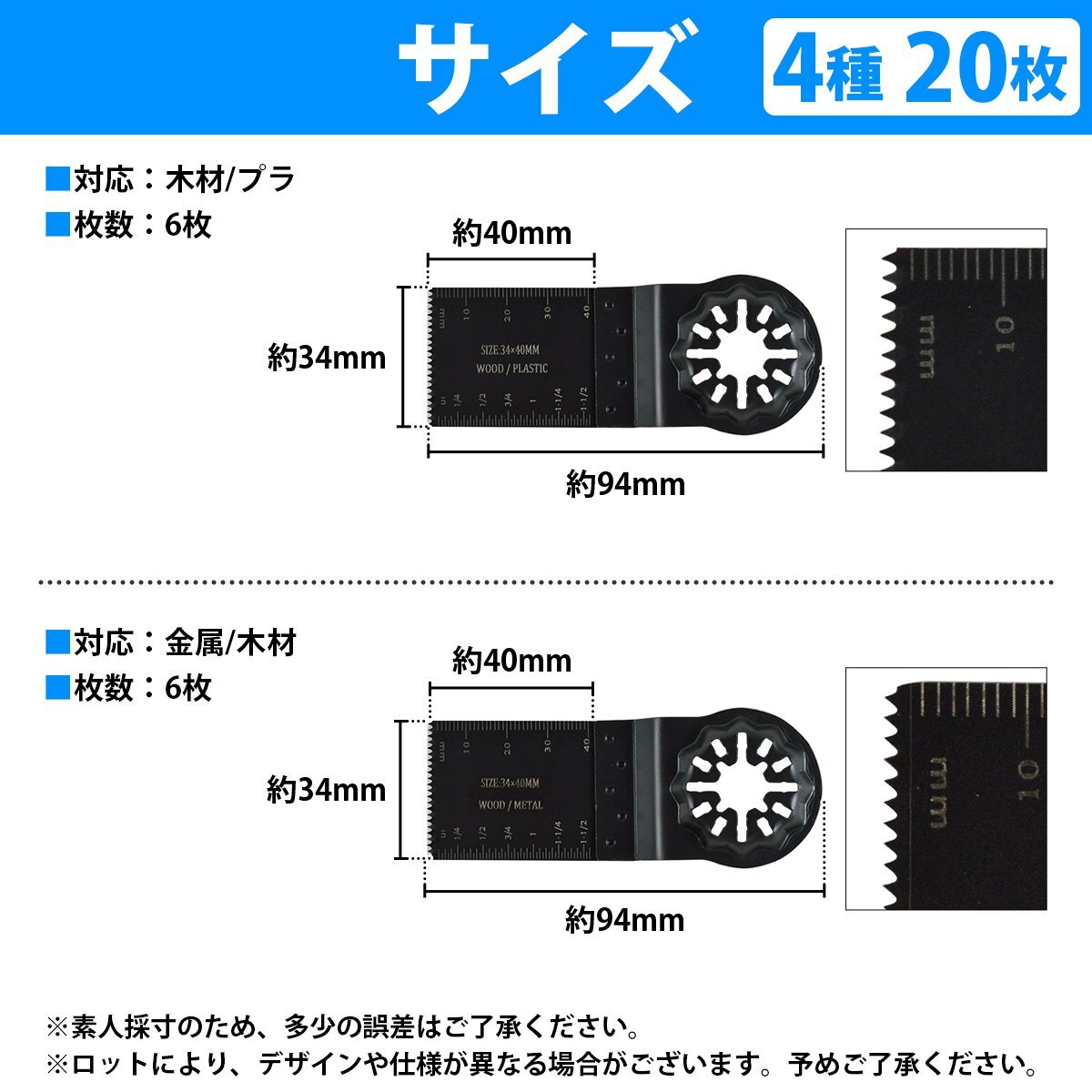 【新品即納】4種 20枚セット マルチツール スターロック OIS 対応 金属/木材/プラ 替刃 日立 ボッシュ マキタ ハイコーキ 替え刃 互換品