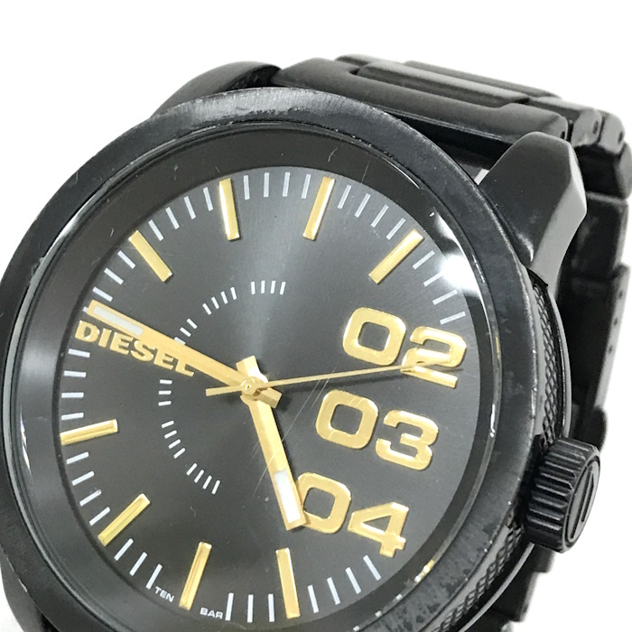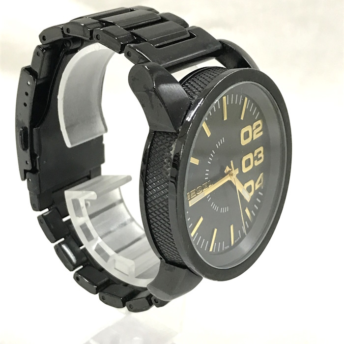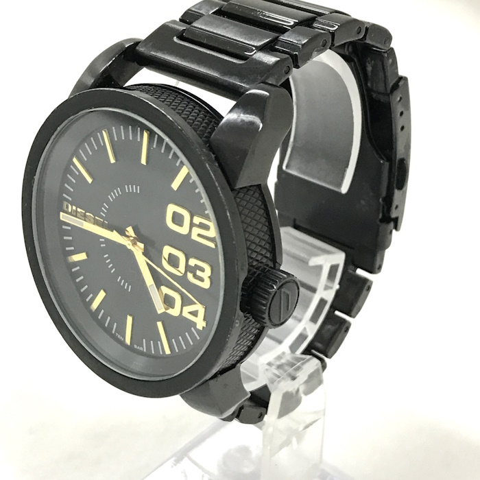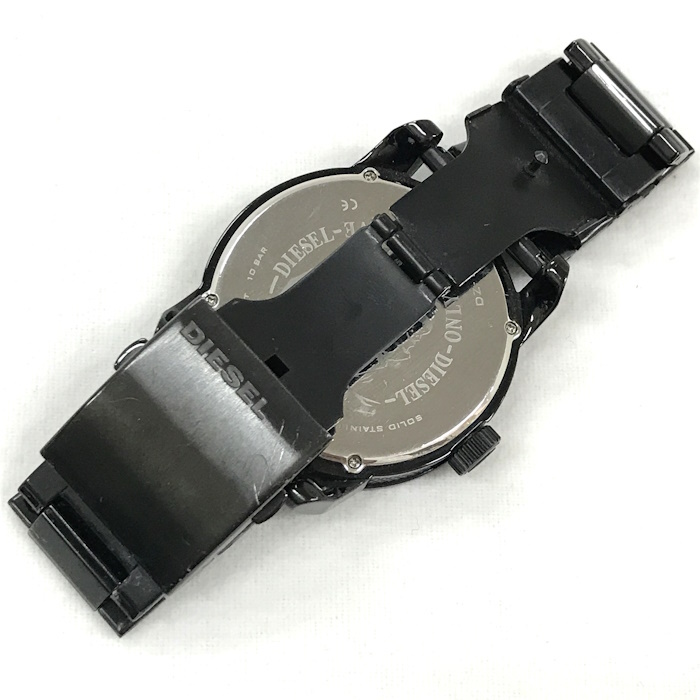 画像の通り、全体的に小傷や汚れなど使用感のある中古Bランクです。 ※画像をよくご確認下さい。 【商品詳細】 ・サイズ:直径約 46 (mm)【リューズ部分を除く】 ・腕周り:最大約 16 (cm)予備コマ×4 ・素材/機能:SS ブラック文字盤 ・ムーブメント:クオーツ |
