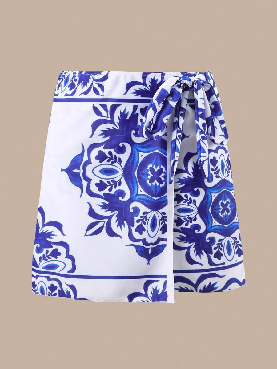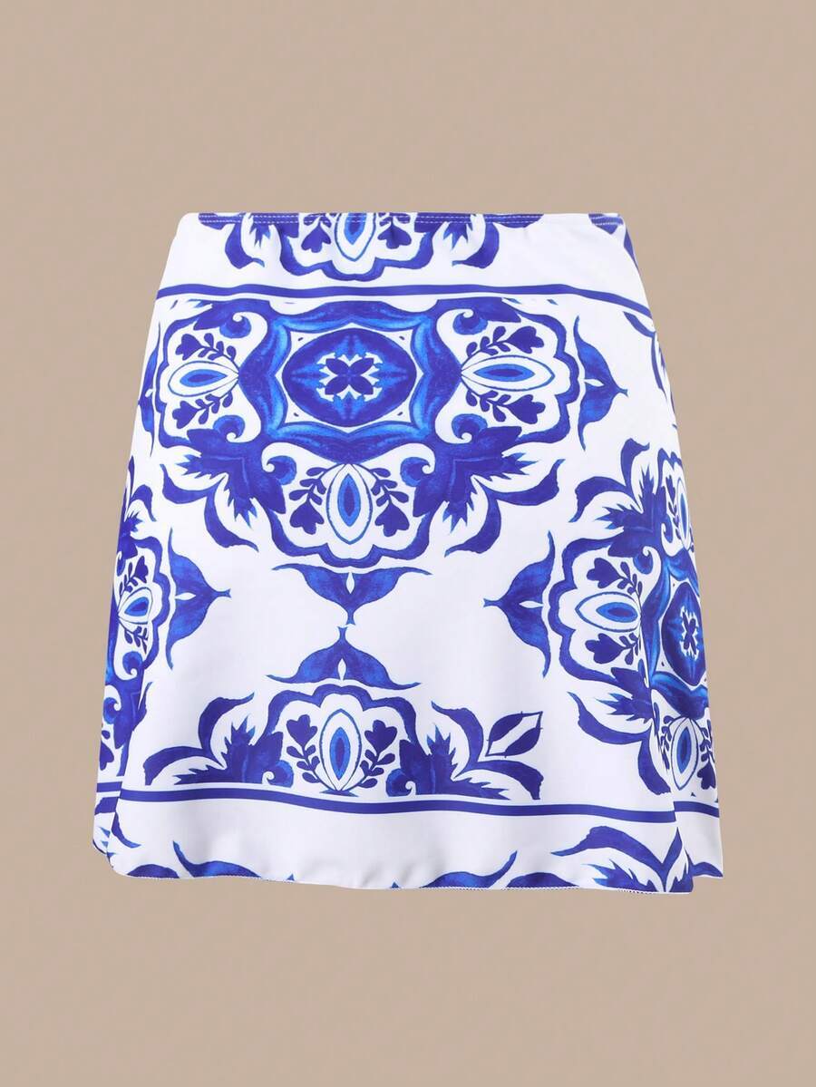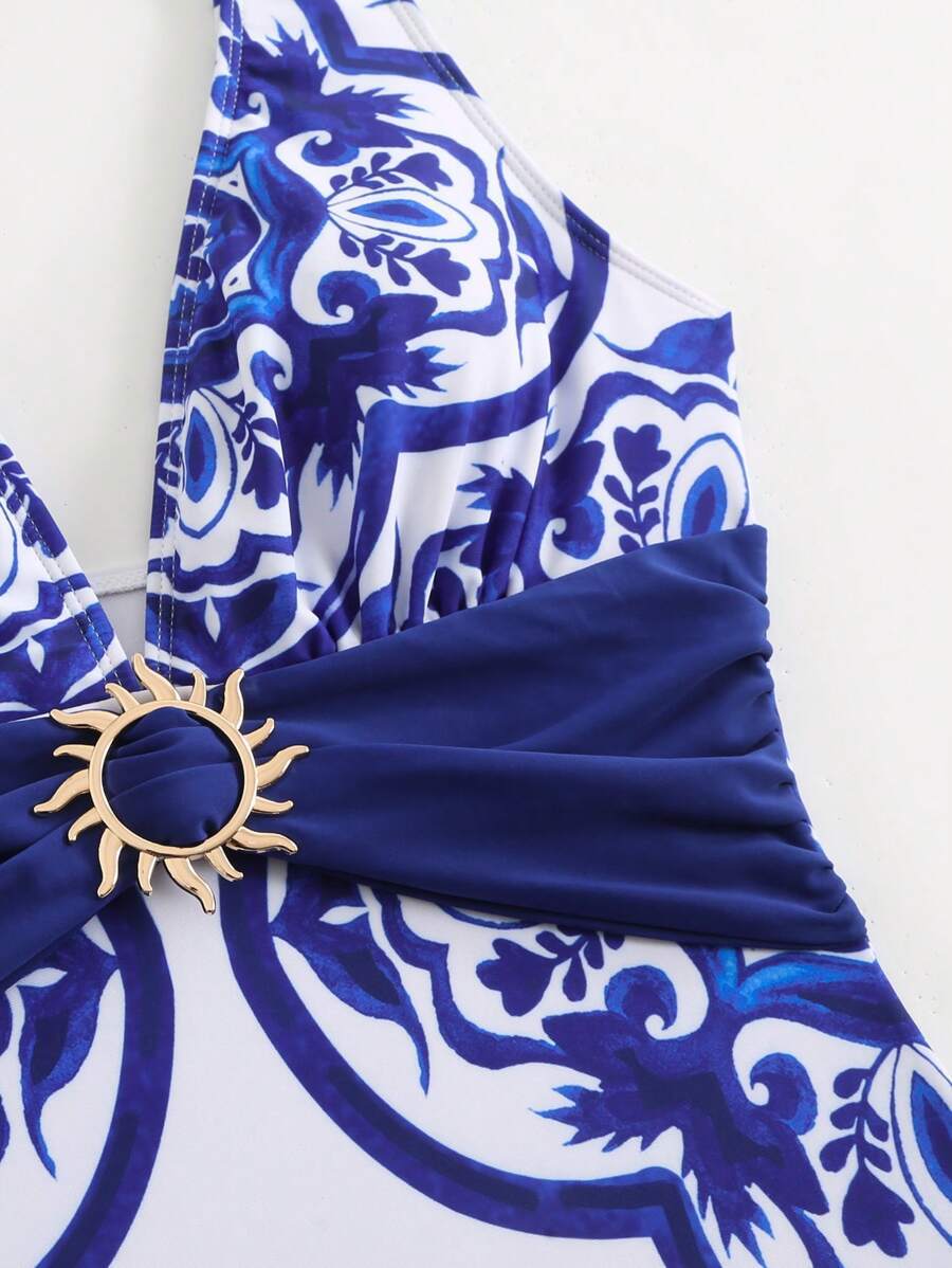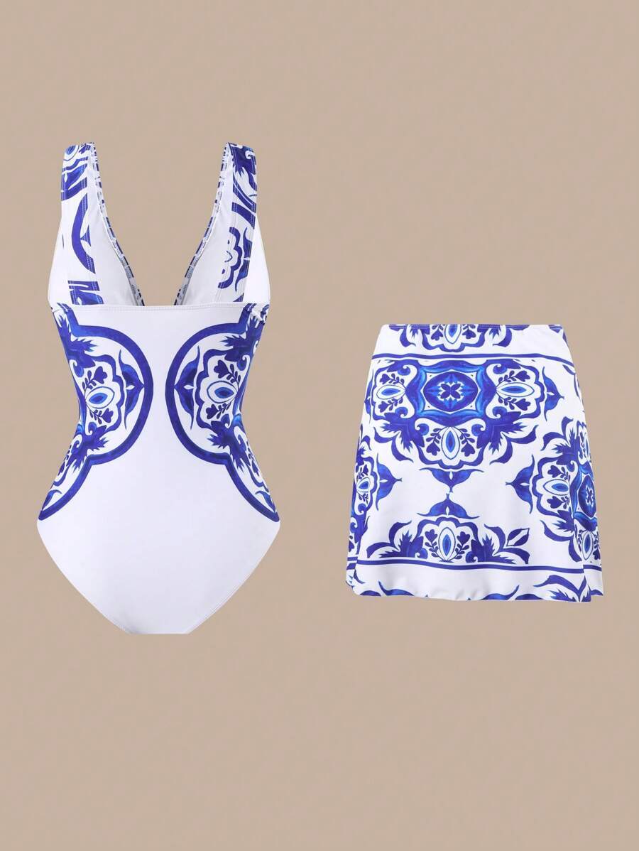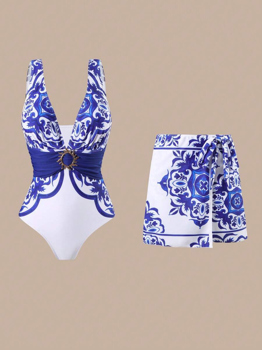 レディース 水着 ワンピース 2022年新作 レディースワンピース水着ビキニ2点セット、ネック ノースリーブ 柄、スカート付き、ビ