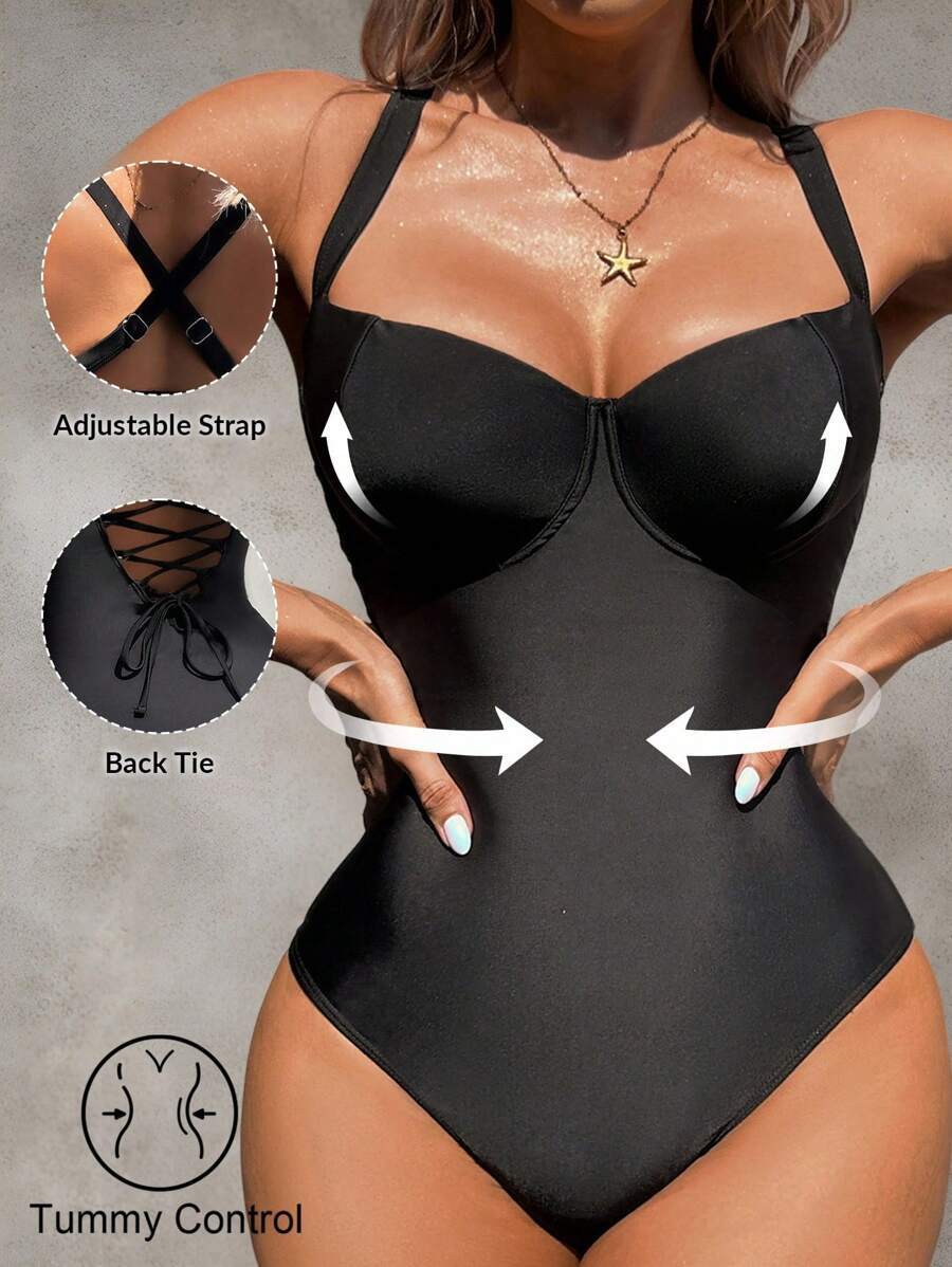 レディース 水着 ワンピース ウィメンズホルターネック トミーコントロール ワンピース水着、エレガントカジュアル 春夏のビーチバケ