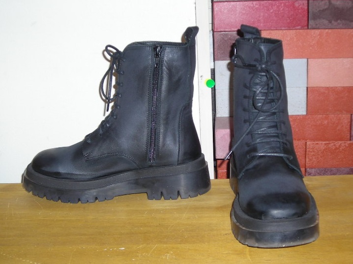 新品☆BUENO★高級ソフト本革製レースアップブーツ☆黒☆22.5㎝