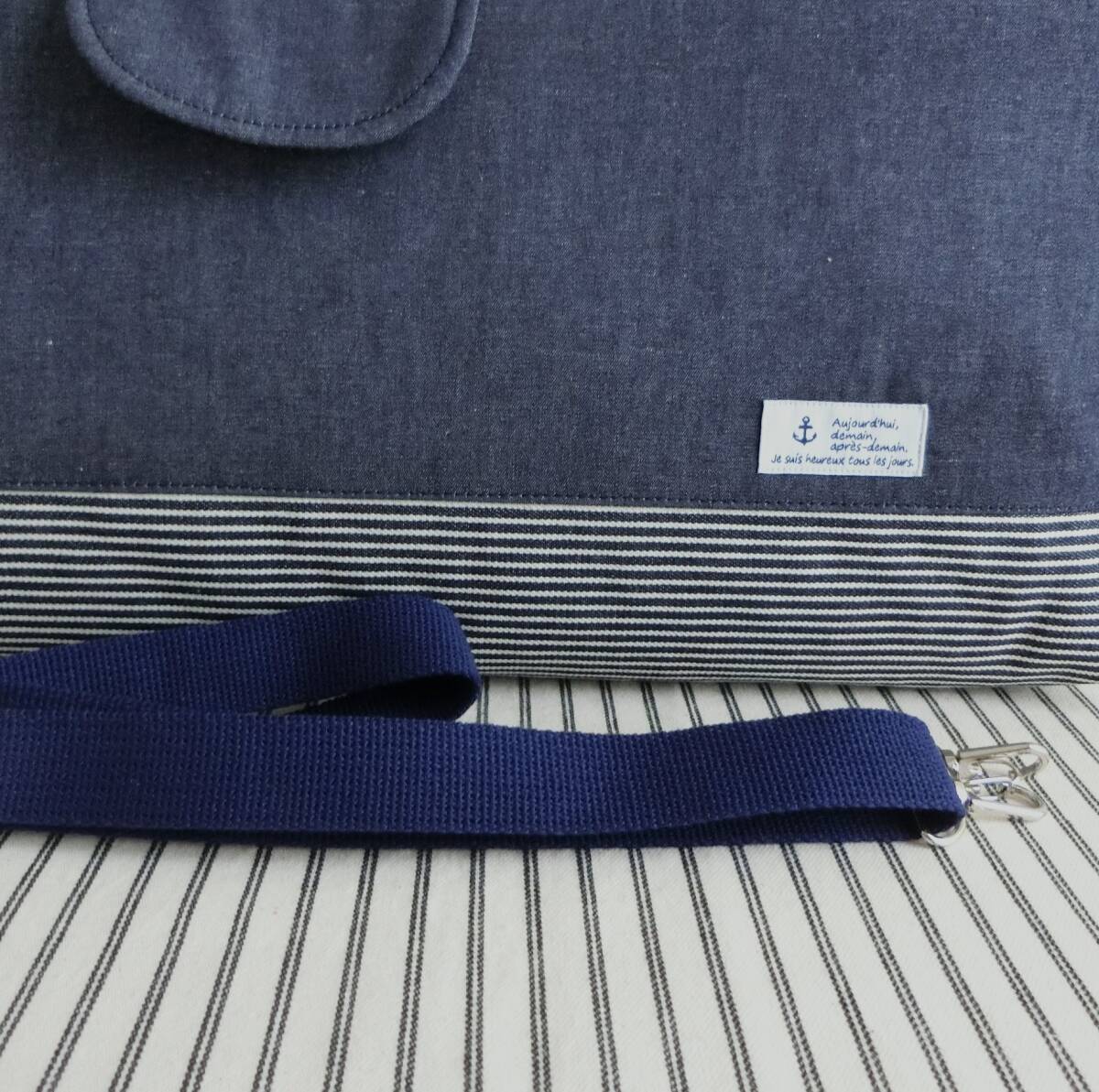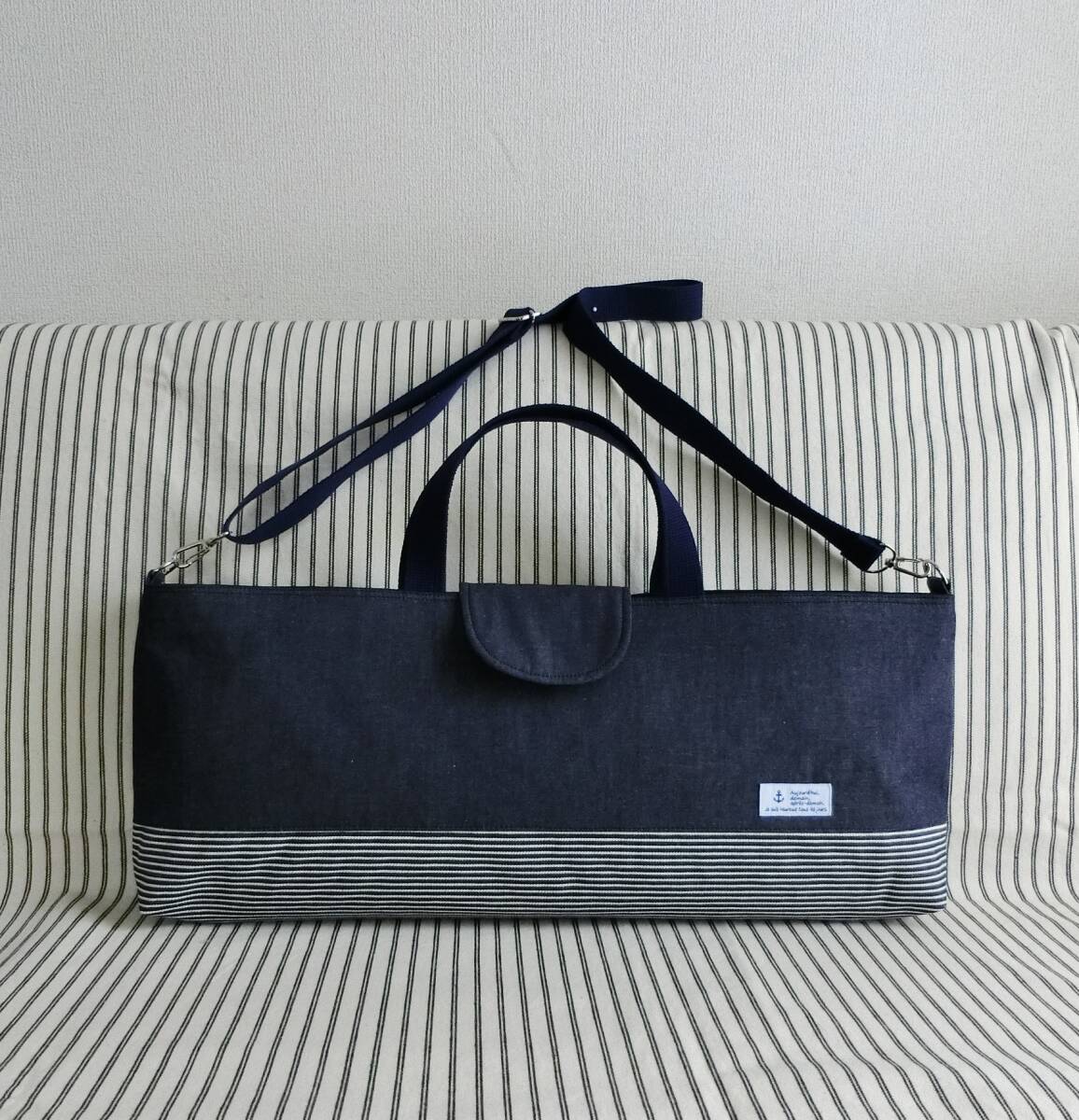 ■ピアニカケース 紺デニム ヒッコリー ショルダー付 肩紐付き 鍵盤ハーモニカケース ハンドメイド