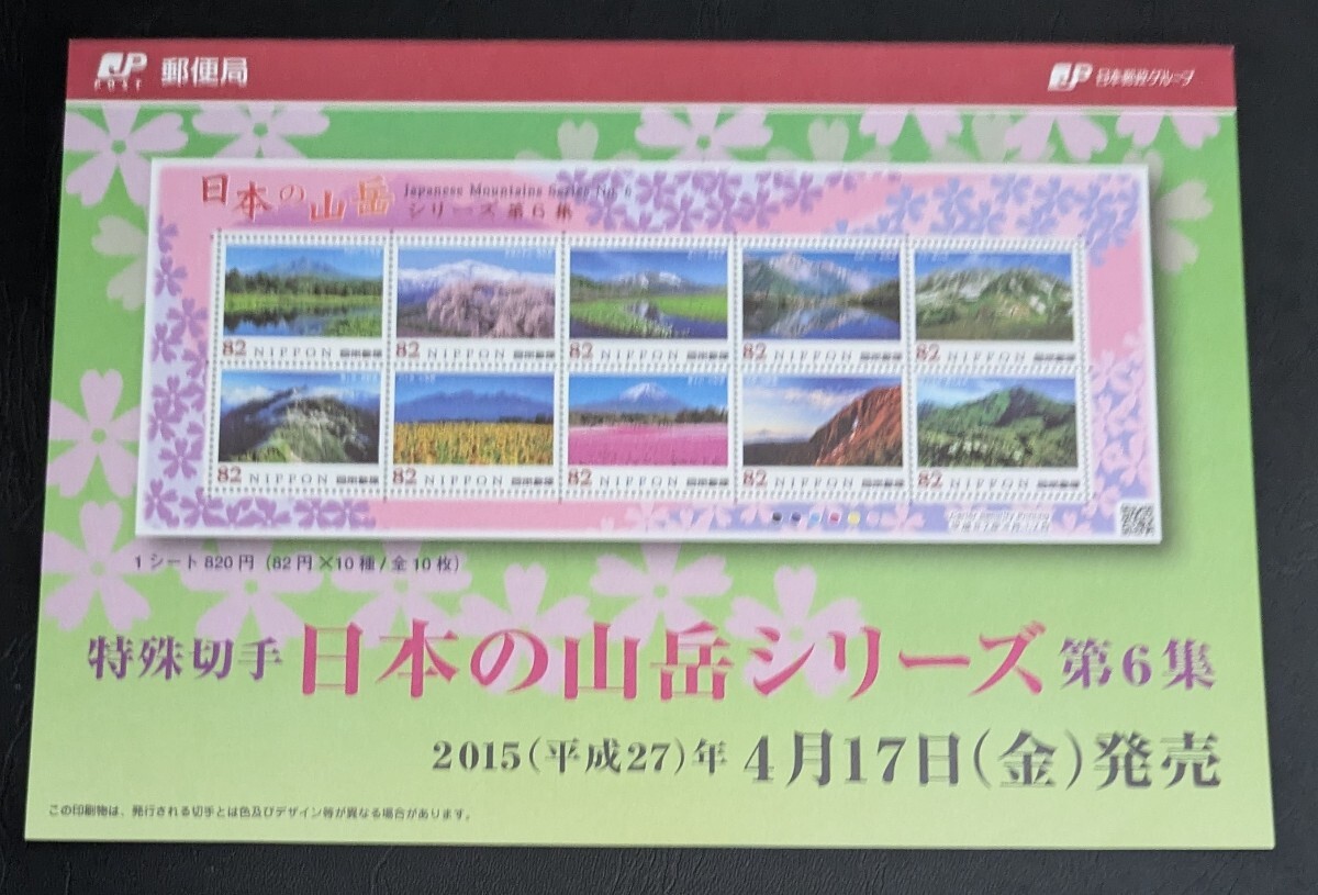 2015年・記念切手-日本の山岳シリーズ第6集(解説書付)シート