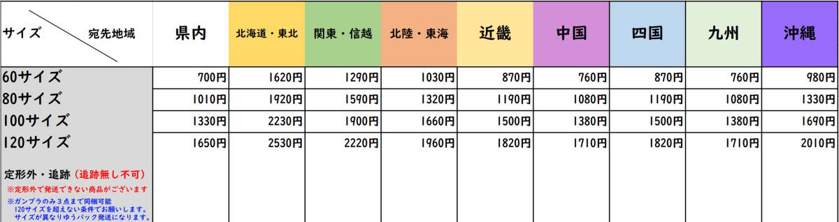 120サイズを超えますと別口発送になりますのでご注意ください。