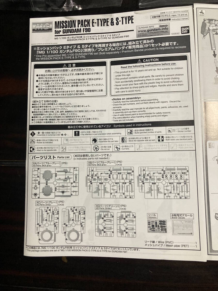 訳あり / 未組立 MG 1/100 ガンダムF90用 ミッションパック EタイプSタイプ