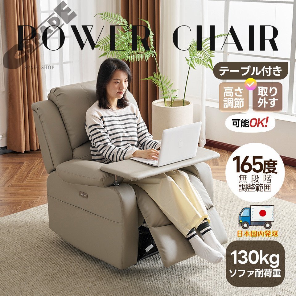 【国内発送】リクライニングチェア テーブル付き リクライニングソファ 1人掛け 電動 リクライニング ファブリック オットマン一体型 パー