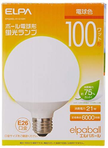 商品名 | エルパ (ELPA) 電球形蛍光灯G形100W形 電球 100V 21W 1370lm 3波長形電球色 屋内用 EFG25EL/21-G102H | ||