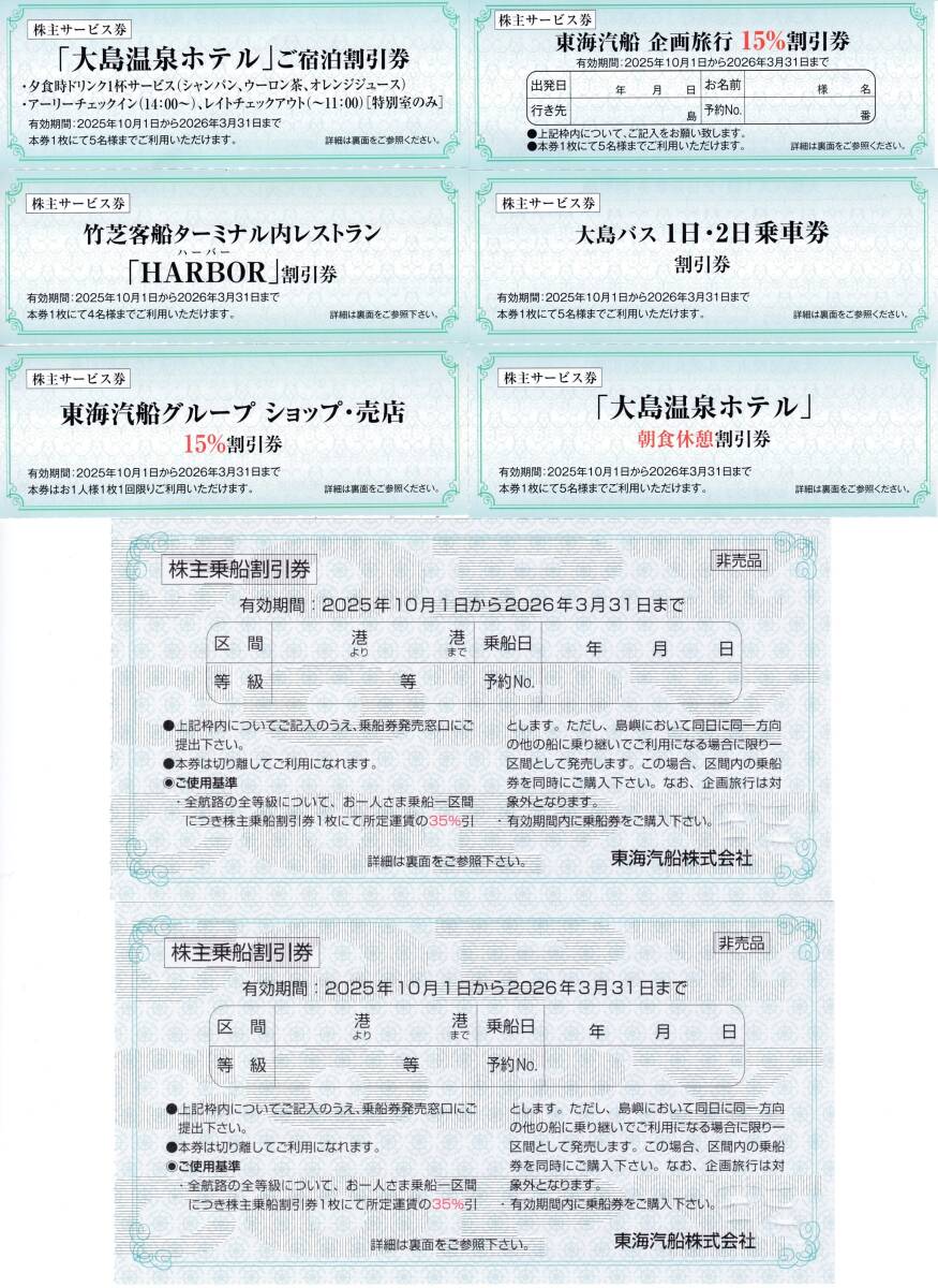 最新 即決価格あり【送料無料】東海汽船株主優待(乗船割引券 2枚、大島温泉ホテル割引券、大島バス乗車割引券他 合計6枚)
