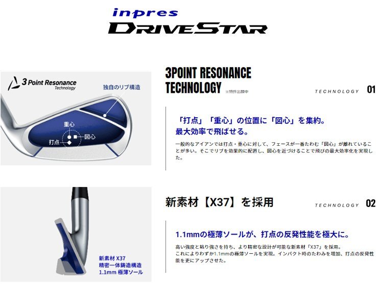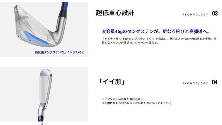【商品特徴】 ■3POINT RESONANCE TECHNOLOGY 一般的なアイアンでは打点・重心に対して、フェースが一番たわむ「図心」が離れていることが多い。 そこでリブを効果的に配置し、図心を近づけることで飛びの最大効率化を実現した。 ■新素材【X37】を採用 1mmの極薄ソールが、打点の反発性能を極大に。 高い強度と粘り強さを持ち、より精密な設計が可能な新素材「X37」を採用。 これによりわずか1.1mmの極薄ソールを実現。インパクト時のたわみを増加、打点の反発性能を更にアップさせた。 ■超低重心設計 キャビティ部へ46gのタングステン(#7I)を搭載し、重心高さ19.0mmの低重心を実現。 理想的なアイアンの弾道で、グリーンを捉える。 ■「イイ顔」 アイアンらしい形状を徹底追及。 飛距離性能も形状も妥協しない新たなinpresアイアン。 【商品詳細】 ●状態:新品・未使用品 ●番手:SW(ロフト:55度) ●構造:SUS630精密鋳造 ●シャフト:SPEEDER NX for Yamaha M423i(FLEX:SR) ●グリップ:ラムキン クロスライン M60相当/BLあり/ロゴ無し(40g) ●バランス:D2 ※撮影時の光量の具合や、ご覧いただいております画面環境によりまして、実際の商品と若干色味が違う場合がございます。 ※商品詳細のスペック値はメーカー表記の数値となりますが、個体差による若干の公差がございます。 ※TOP画像は7Iを使用しておりますが商品は商品名通りのロフトとなります。