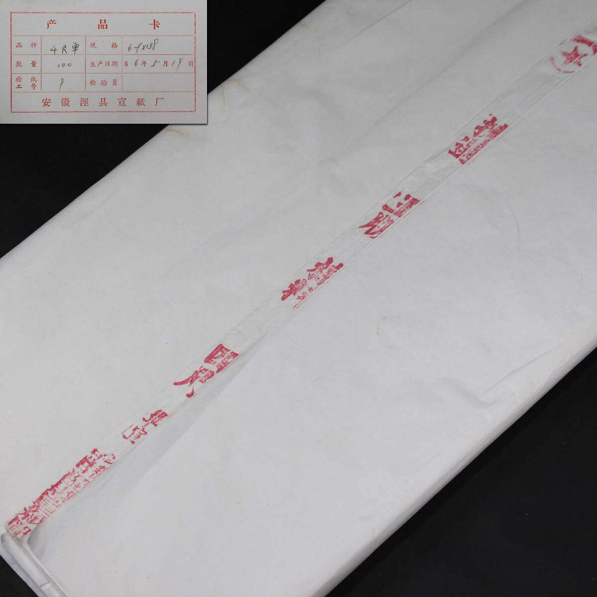 1966年製 紅星牌 揀選 玉版 棉料 四尺 単宣 公私合営 涇県宣紙 72枚 有産品紙 検索: 書道 古紙 唐紙 本画仙 特神 中国宣紙