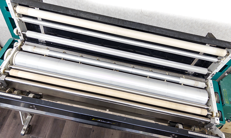 極東産機の自動壁紙糊付機 Hiβ-Vです。