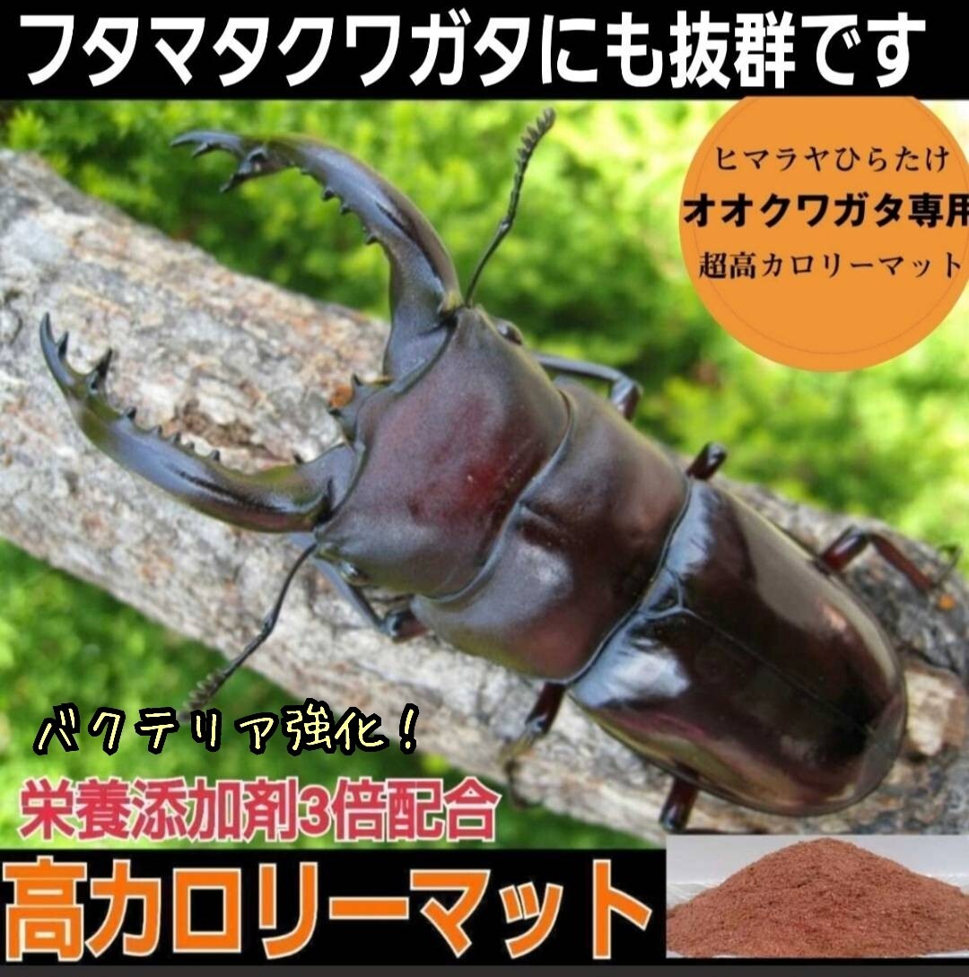 こだわりのクワガタ、カブトムシ用品を30年以上製造してきました。 たくさんのリピーター様には大変感謝申し上げます。 また、たくさんの大型羽化実績の効果報告を頂きありがとうございます。 オオクワガタの幼虫をマット飼育したい方にお薦め! 栄養価抜群の 『オオクワガタ専用 超高カロリーマット』の出品です。 ![]() (写真添付欄に画像を10枚載せてありますのでご覧下さいませ) 10リットル ![]() (丈夫で破れない便利なチャック付きの袋でマットが余っても長期保存できます) ご希望のリットル数がございましたら質問からメッセージ頂けたらご対応致します。 1箱に最大100リットルまで同梱できます。 1度に1000リットルまで発送可能です。 ![]() 長年の研究からオオクワガタに最も有効であったクヌギのオガコを100%使用して作成した最高峰の新品の菌糸『ヒマラヤひらたけ』から仕上げた菌床発酵マットにオオクワガタ専用の栄養添加剤をたっぷり配合した超高カロリーマットです。 ![]() 精密なマシーンでマットを微粒子に粉砕して幼虫が食べやすくしトレハロースやグルコース、キトサン、ローヤルゼリー、高活性グルテン、アルギニン、カルシウム、ミネラル、酵素、酵母菌、特殊アミノ酸などの栄養添加剤を贅沢に通常3倍配合した拘りのマットに厳選したクヌギの生オガをブレンドし特殊発酵させた極上品です。 ![]() 廃菌床などは一切使わず新品の菌床を原料にしコストと時間をかけて完成させた究極のこだわりマットです。 一般的な他社の発酵マットはキノコ屋さんが廃棄した廃菌床を原料に使ってるのがほとんどで栄養価も低下してます。 また、安価なマットは野外で発酵させてる為、雑虫やコバエの卵が混入してる場合が多く飼育中に雑虫がわくのです。 当社の「超高カロリーマット」は新品の菌床だけを管理された室内でじっくり発酵させてますので雑虫混入が100%ありませんので飼育中に雑虫やコバエがわきません。 ※外部からコバエが混入しないようにフィルター付きのケースがお薦めです。