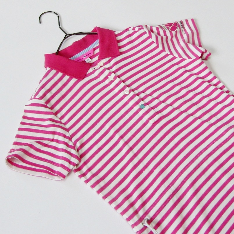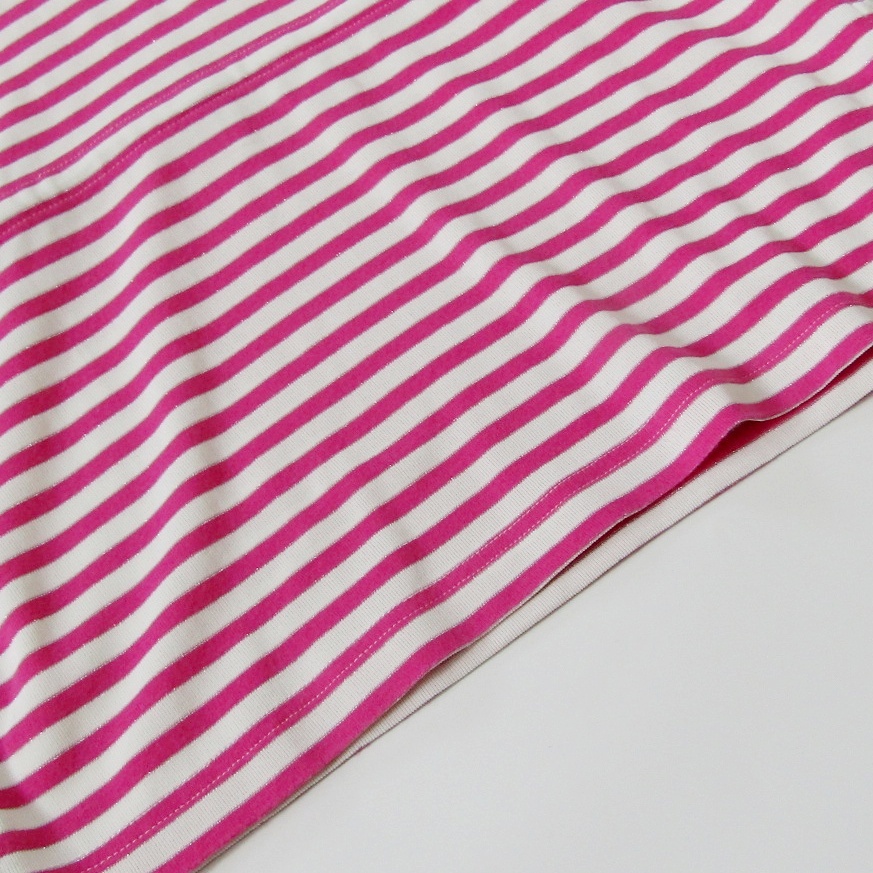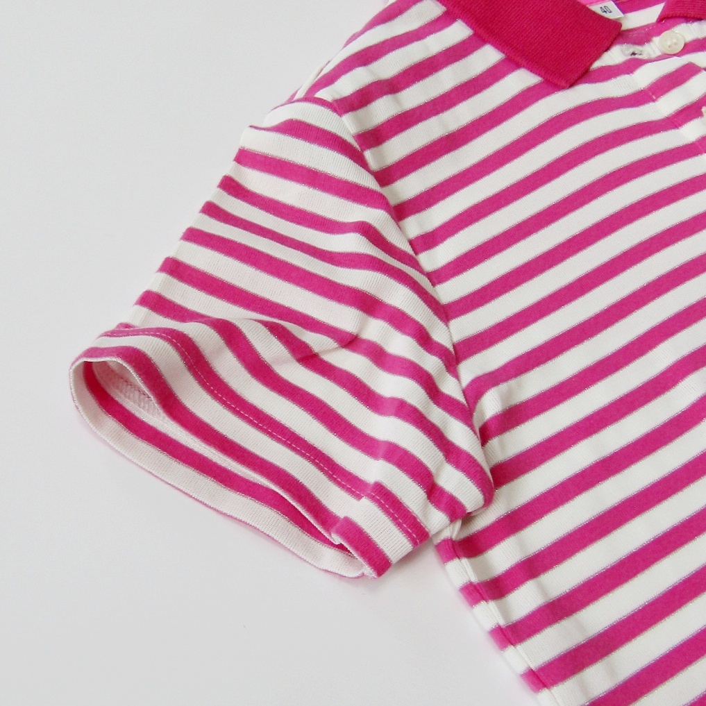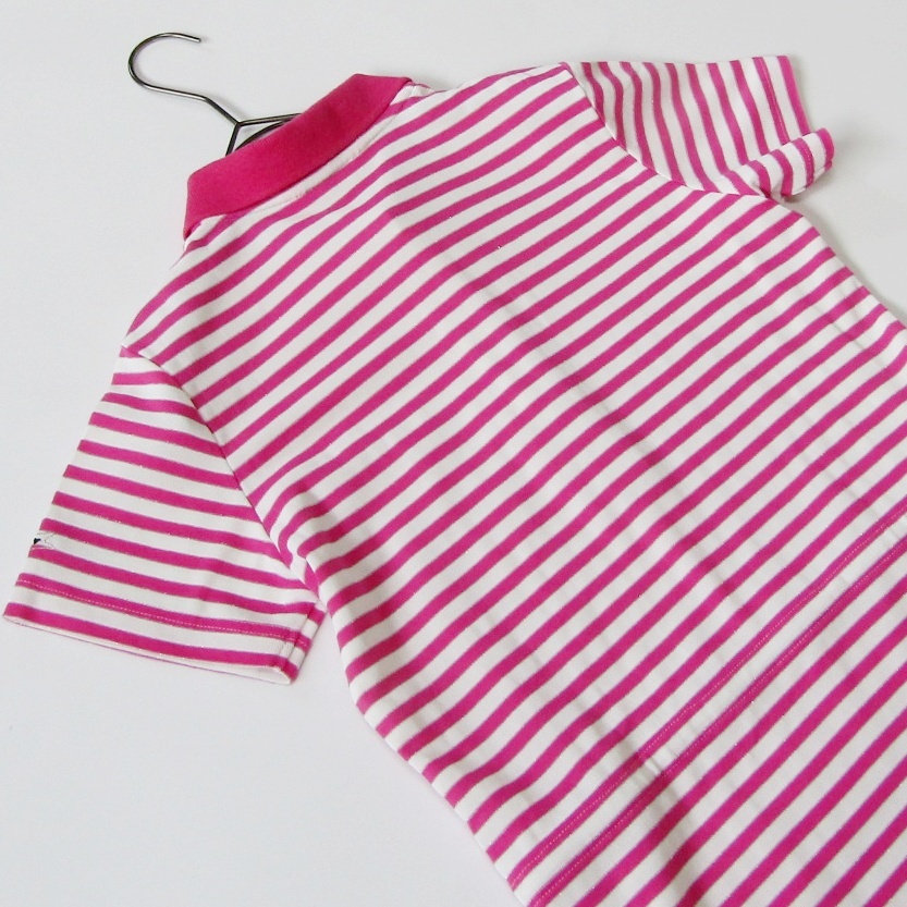 白地にピンクのボーダーが映え、フェミニンさとスポーティーさを兼ね備えた一枚。