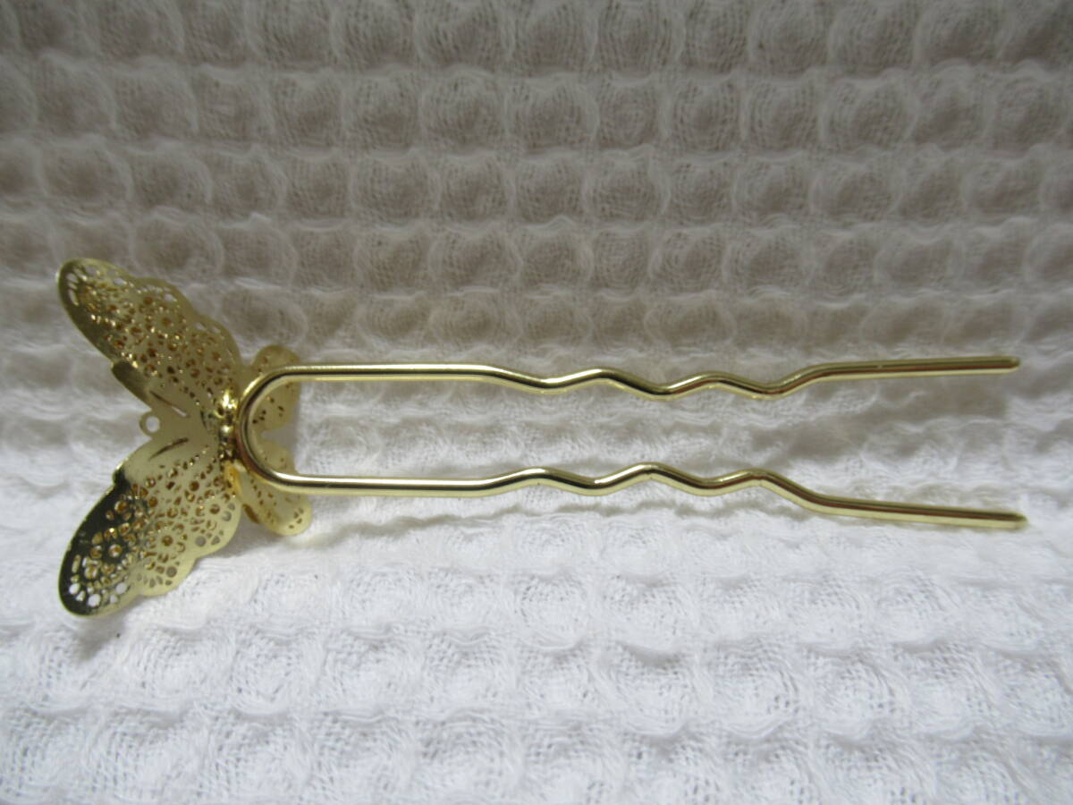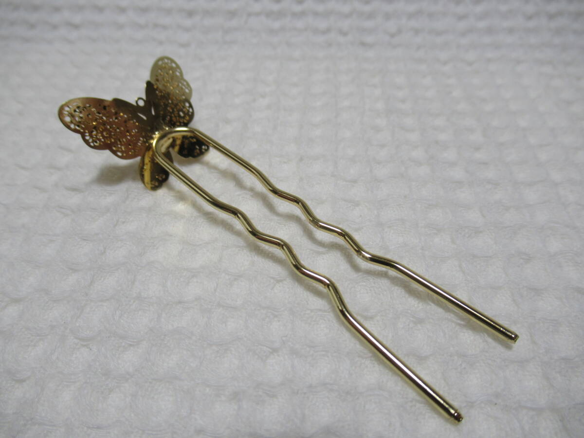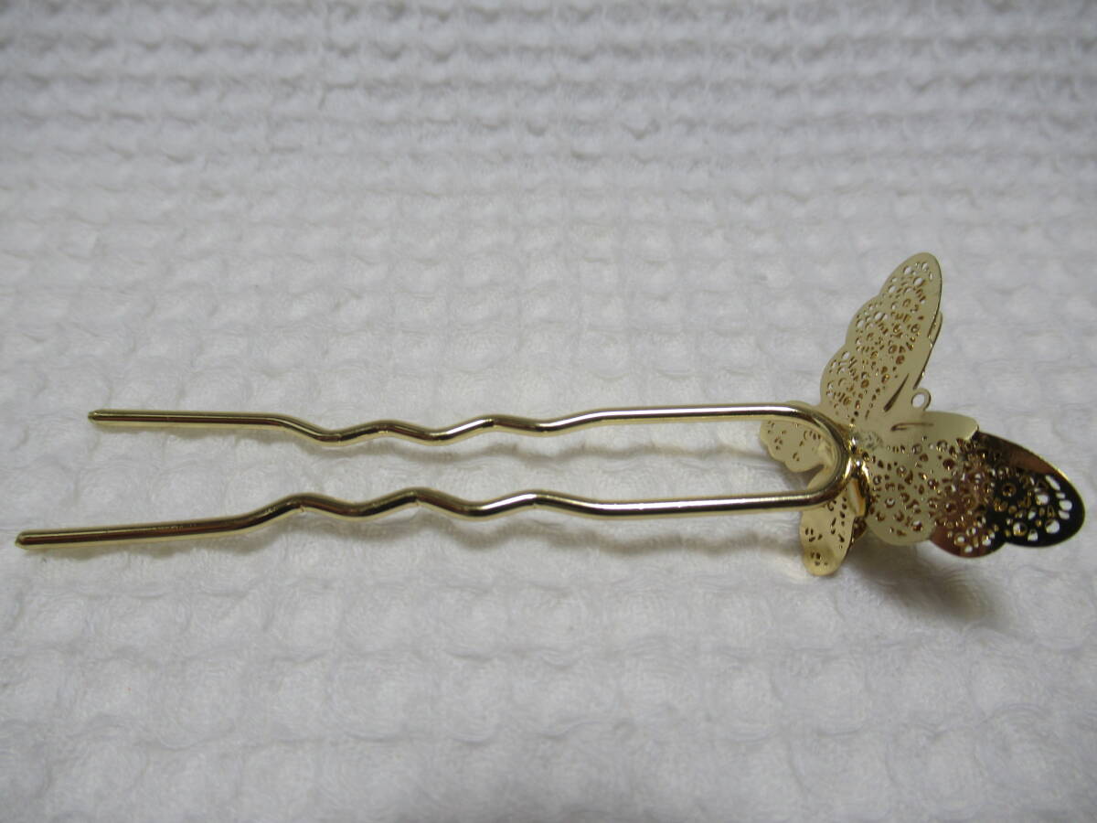 ラインストーン付きゴールド色メタル系の蝶型 ゴールド色メタル系小さいUコーム